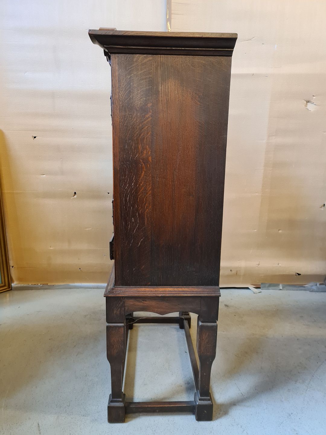 Skab i bejdset egetræ, fra 1980erne. Det har små brugsspor. Højde 130cm Bredde 69cm Dybde 39cm Emne nummer: 73855