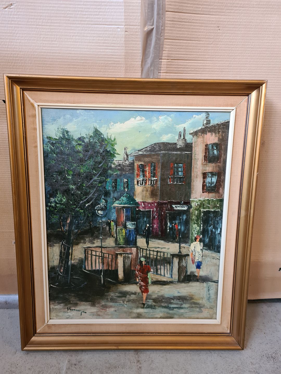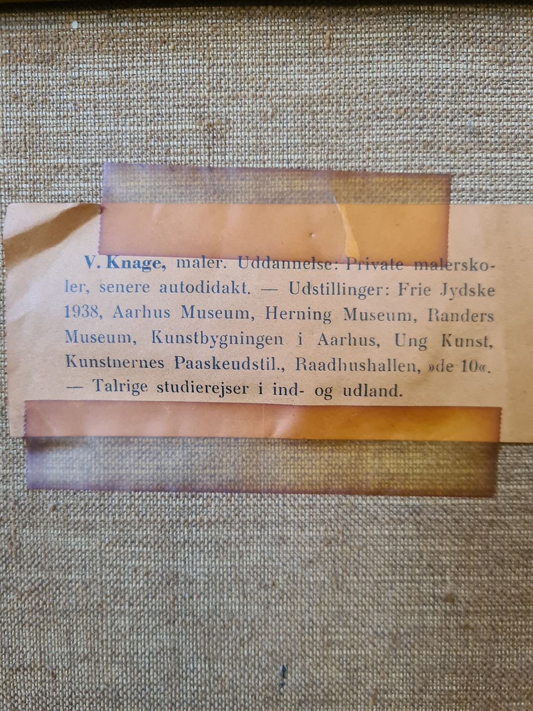 Maleri af V. Knage i guldmalet ramme, fra 1940erne.