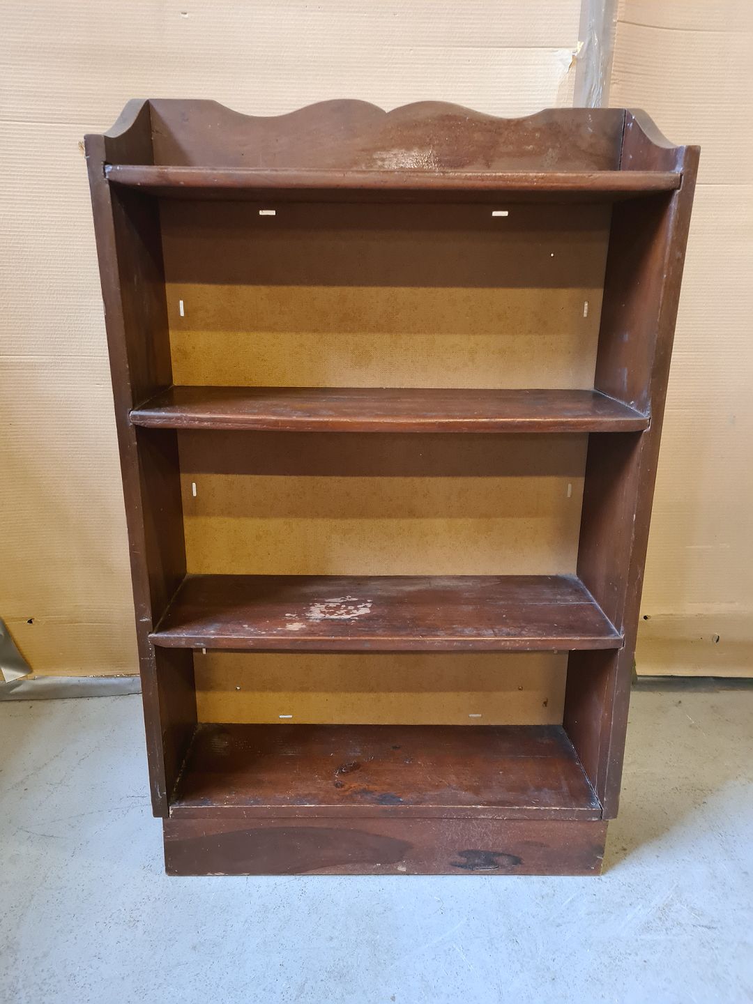 Malet reol i massivt fyrretræ og bøgetræ, fra 1920erne. Den har brugsspor. Højde 99cm Bredde 62cm Dybde 20cm Emne nummer: 74109