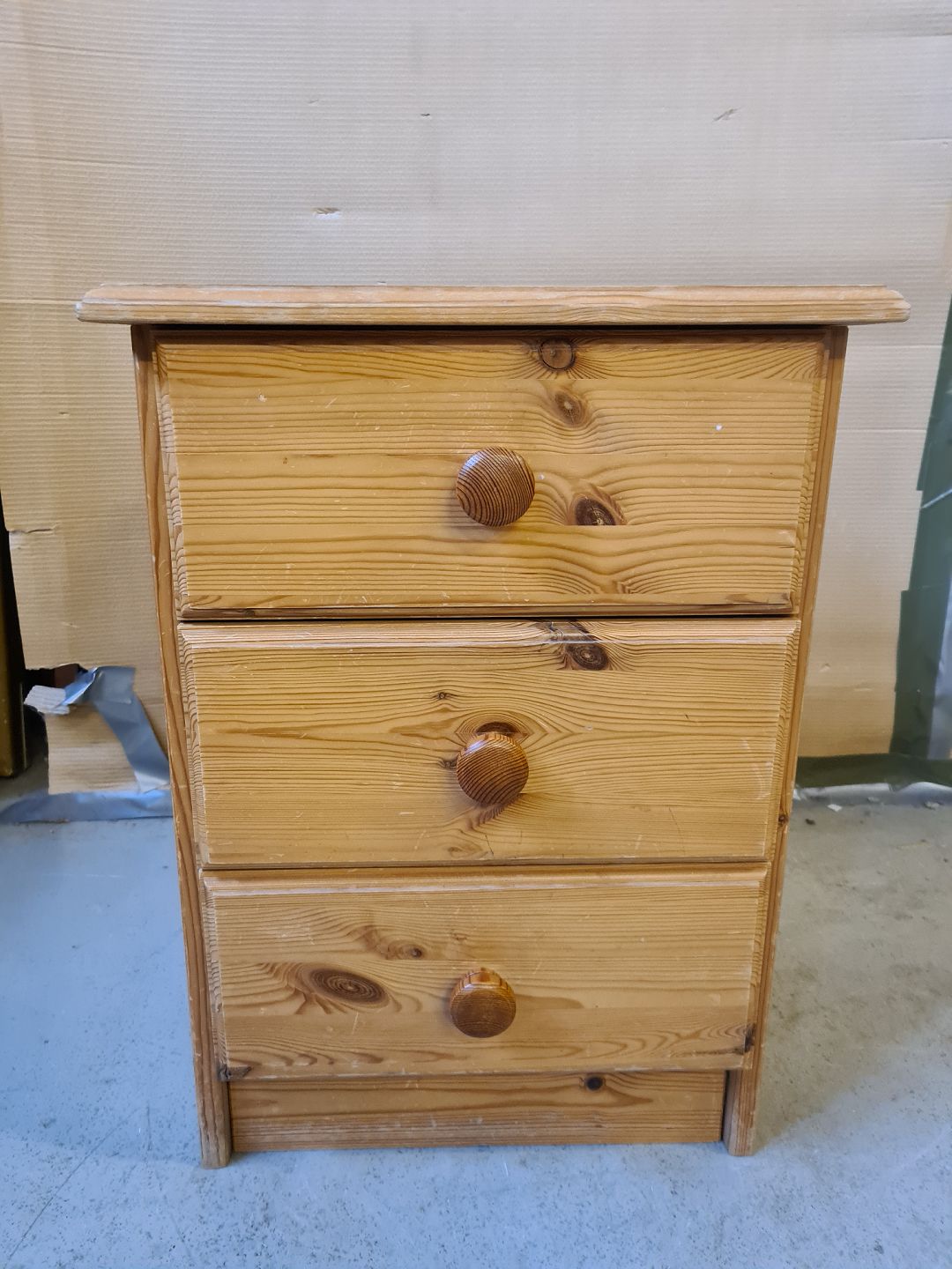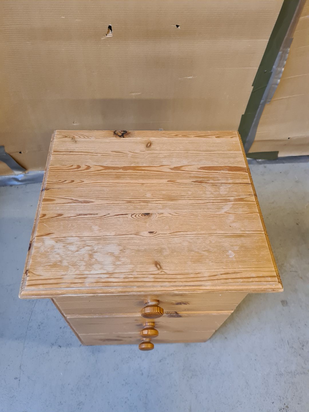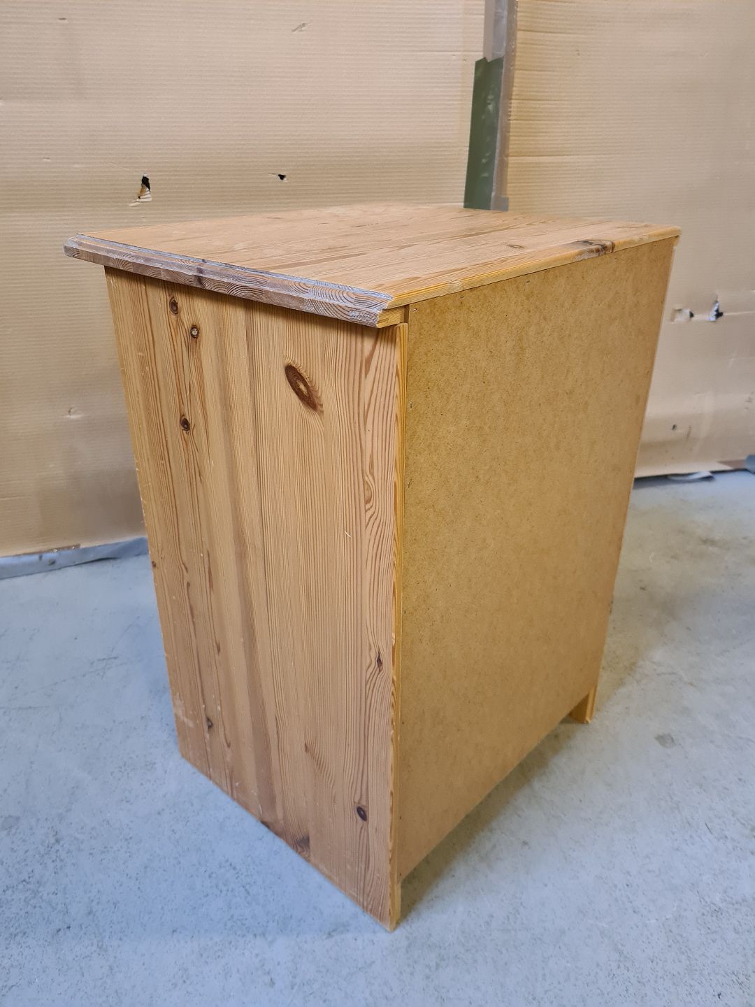 Kommode i massivt fyrretræ, fra 1990erne. Den har brugsspor. Højde 62cm Bredde 45cm Dybde 39cm Emne nummer: 74139