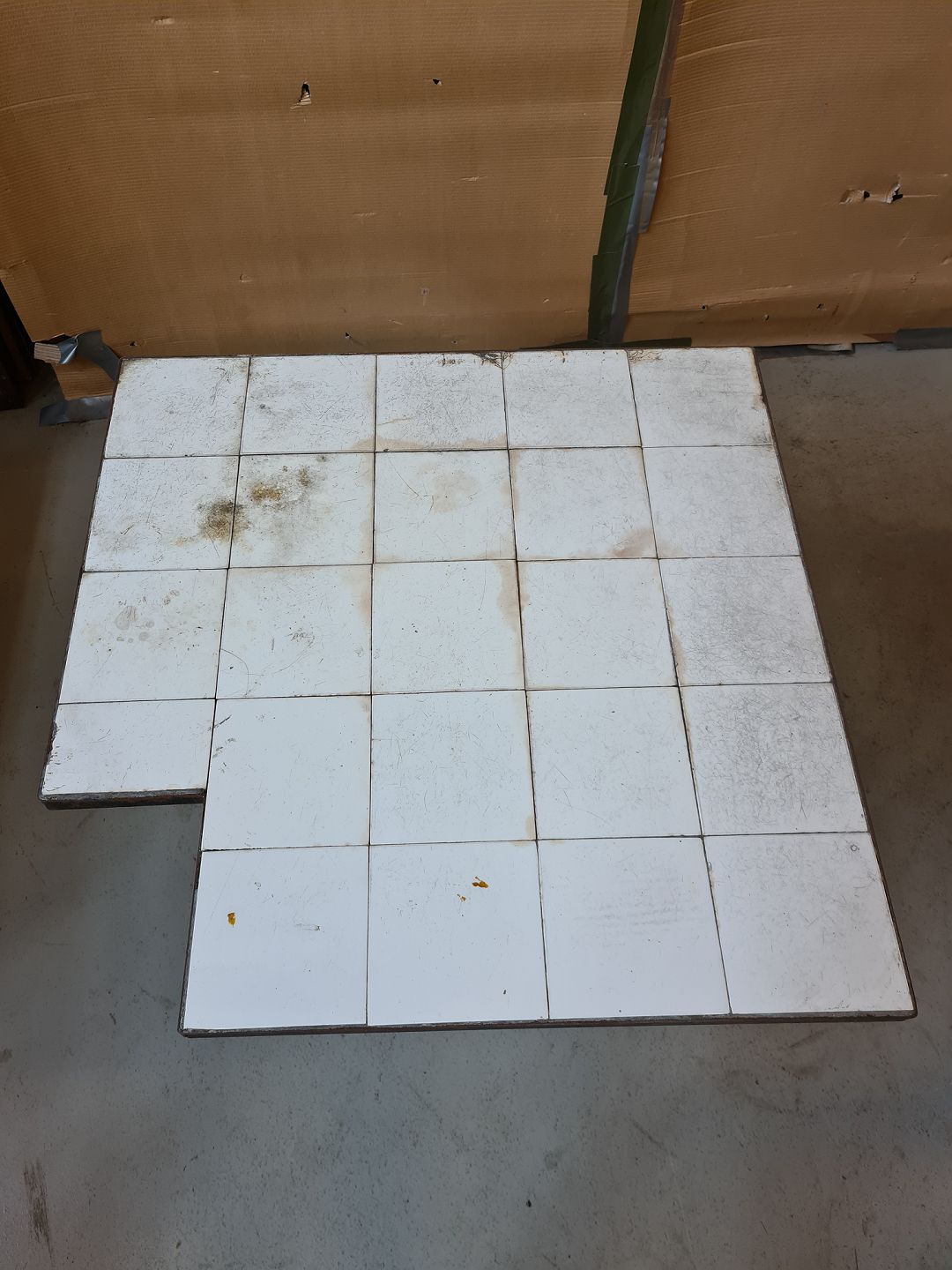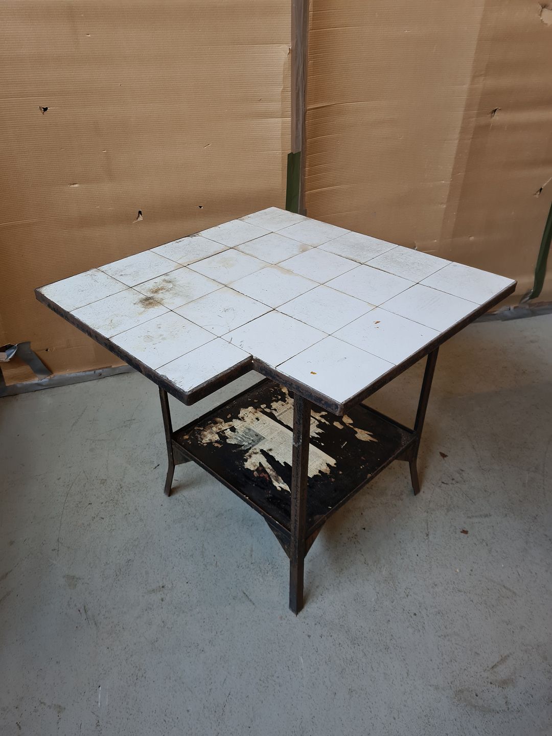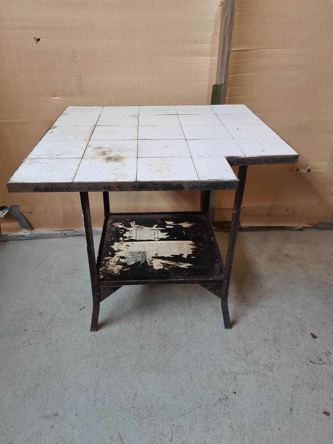 Gasbord i malet jern med kakler, fra 1920erne. Det har brugsspor. Højde 74cm Bredde 77cm Dybde 77cm Emne nummer: 74152