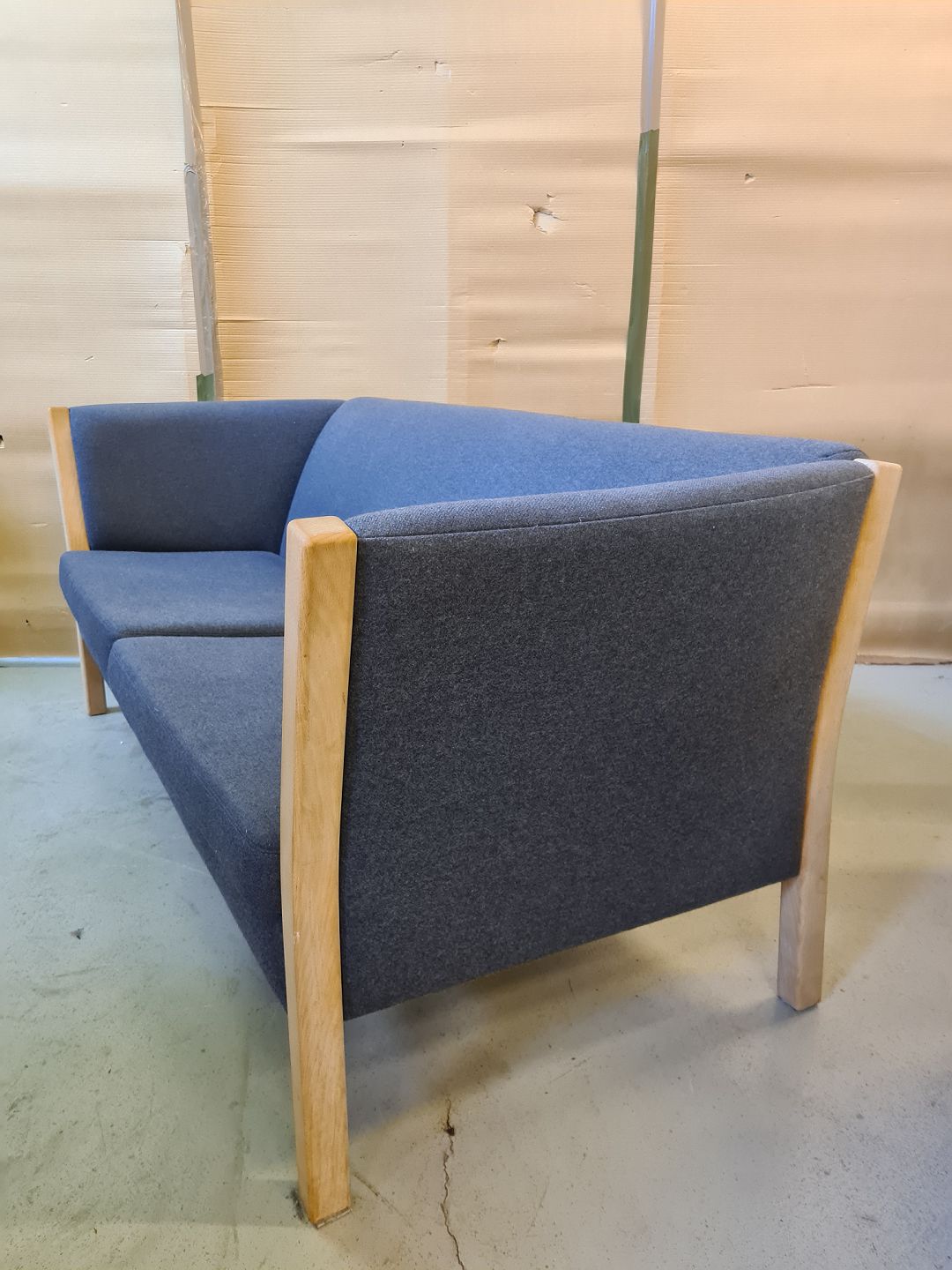 Sofa i egetræ af nyere dato. Den har små brugsspor. Højde 72cm Bredde 179cm Dybde 76cm Sædehøjde 42cm Emne nummer: 74197