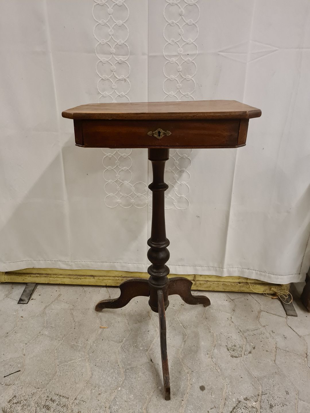 Pyntebord i fineret mahogni, fra 1900erne. Det er lidt skævt, men stabilt. Højde 80cm Bredde 47cm Dybde 35cm Emne nummer: 90508