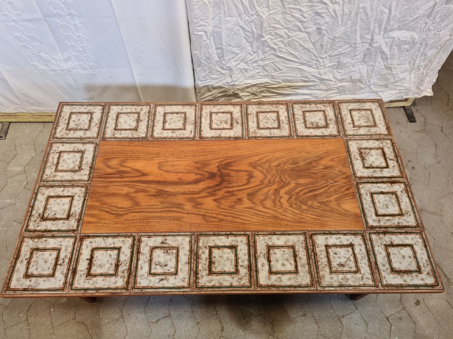 Sofabord i fineret palisander med kakler, fra 1960erne. Det har brugsspor. Højde 49cm Bredde 82cm Dybde 143cm Emne nummer: 90527