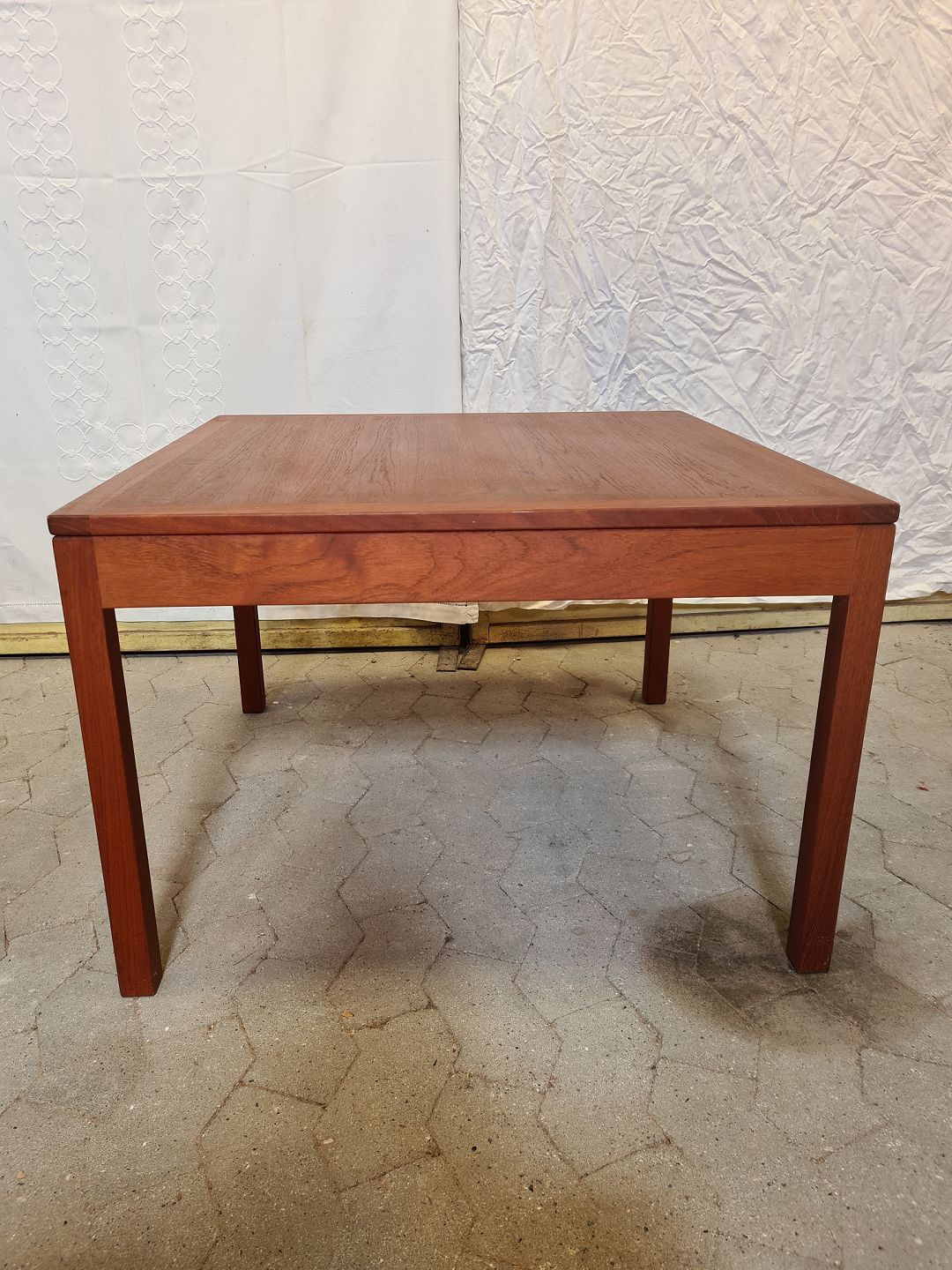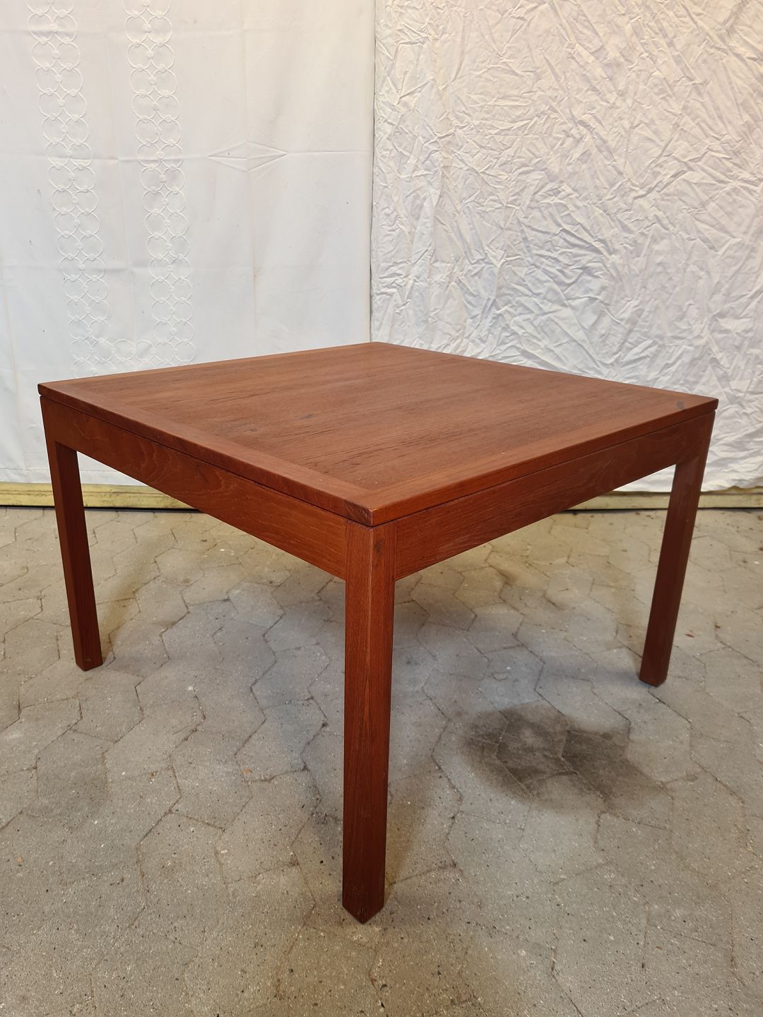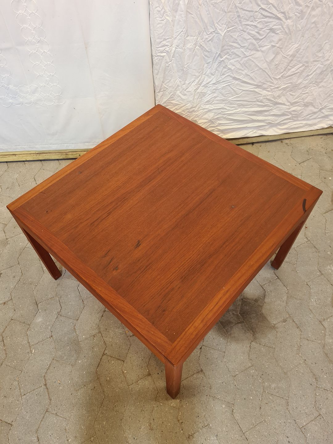 Sofabord Designet af Børge Mogensen produceret af fredericia Stolefabrik udført i fineret og massivt teaktræ, fra 1974. Det har brugsspor. Højde 55cm Bredde 80cm Dybde 80cm Emne nummer: 90546