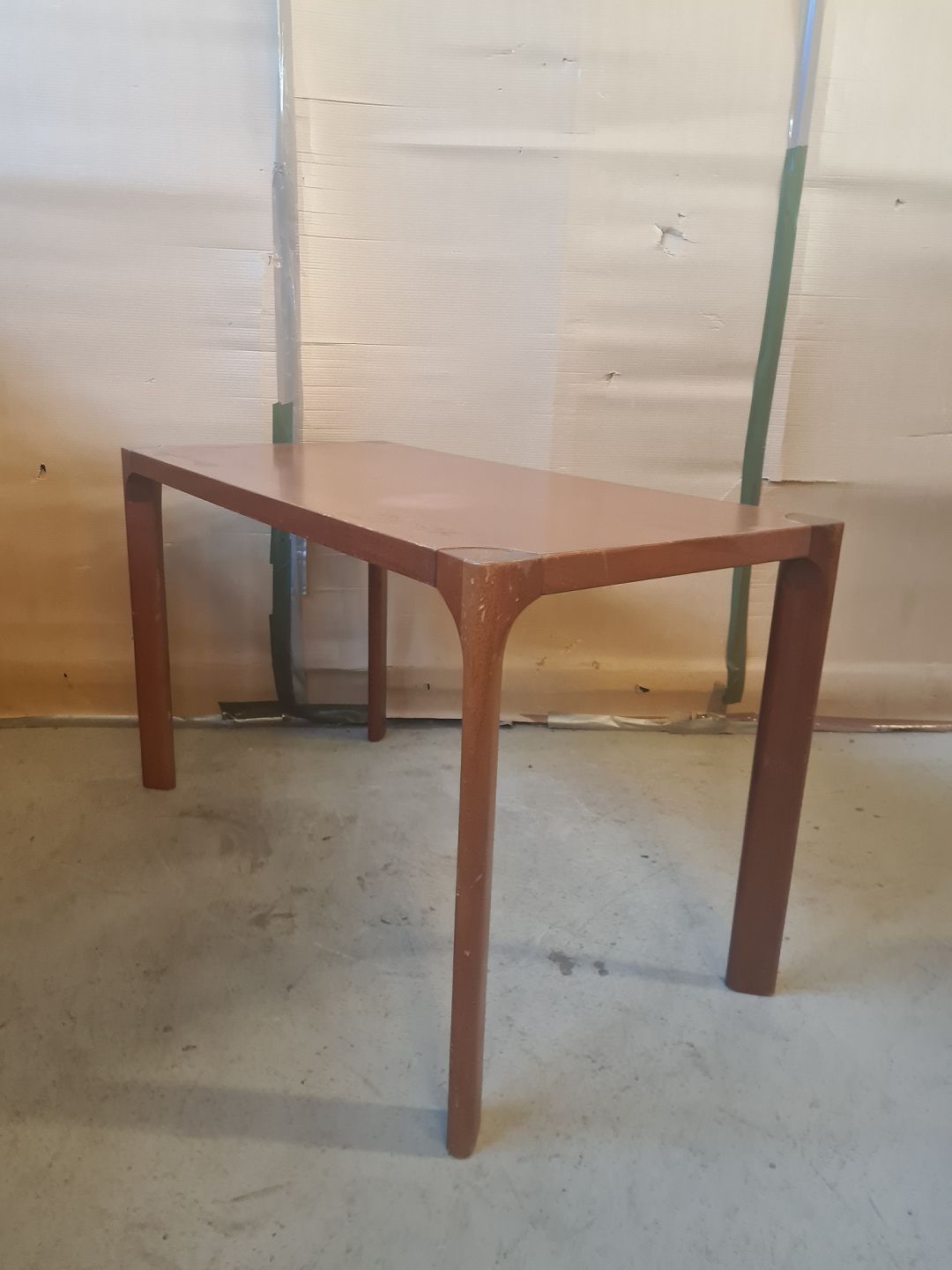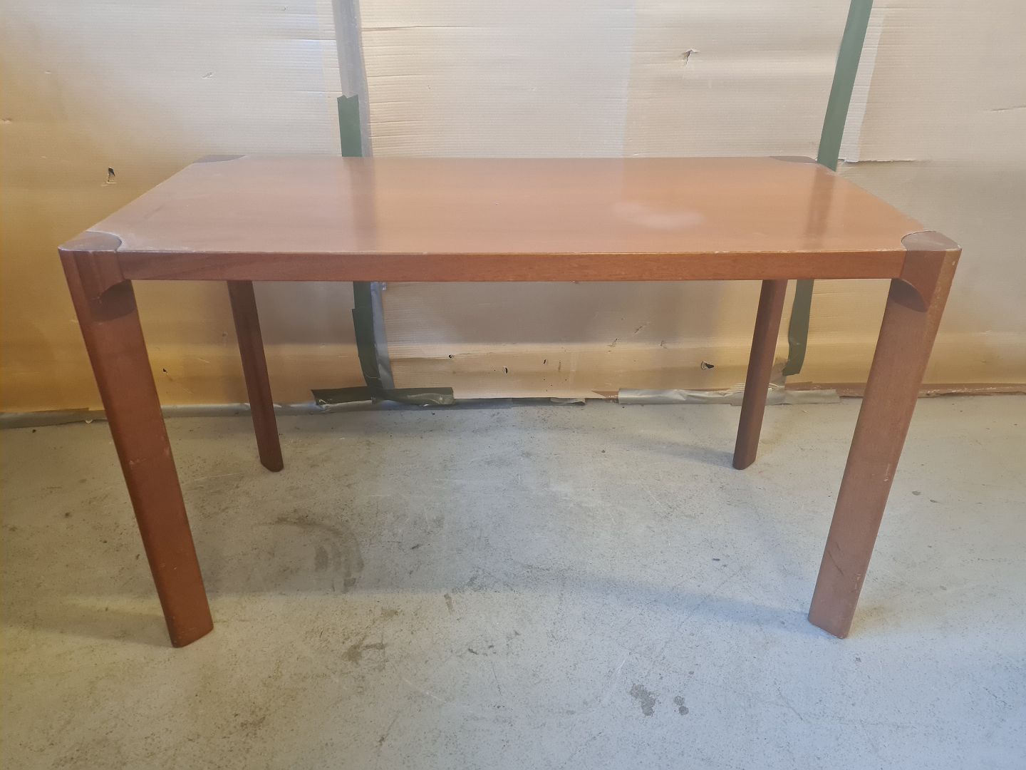 Bord i fineret cuba mahogni, fra 1950erne. Det har brugsspor. Højde 72cm Bredde 60cm Længde 120cm Emne nummer: 74234