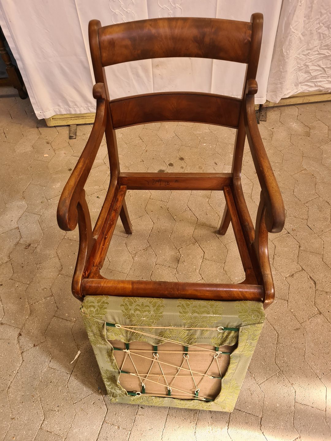 Armstol i mahogni og bøgetræ, fra 1910erne. Den har brugsspor. Ryghøjde 87cm Sædehøjde 44cm Emne nummer: 90605