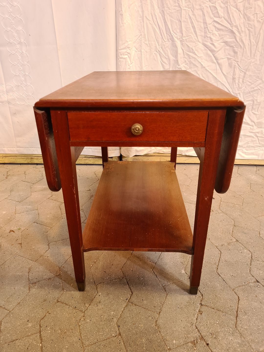 Lampebord i fineret mahogni, fra 1980erne. Det har brugsspor. Højde 58cm Bredde 70cm Længde 40cm Længde med klapper 84cm Emne nummer: 90615