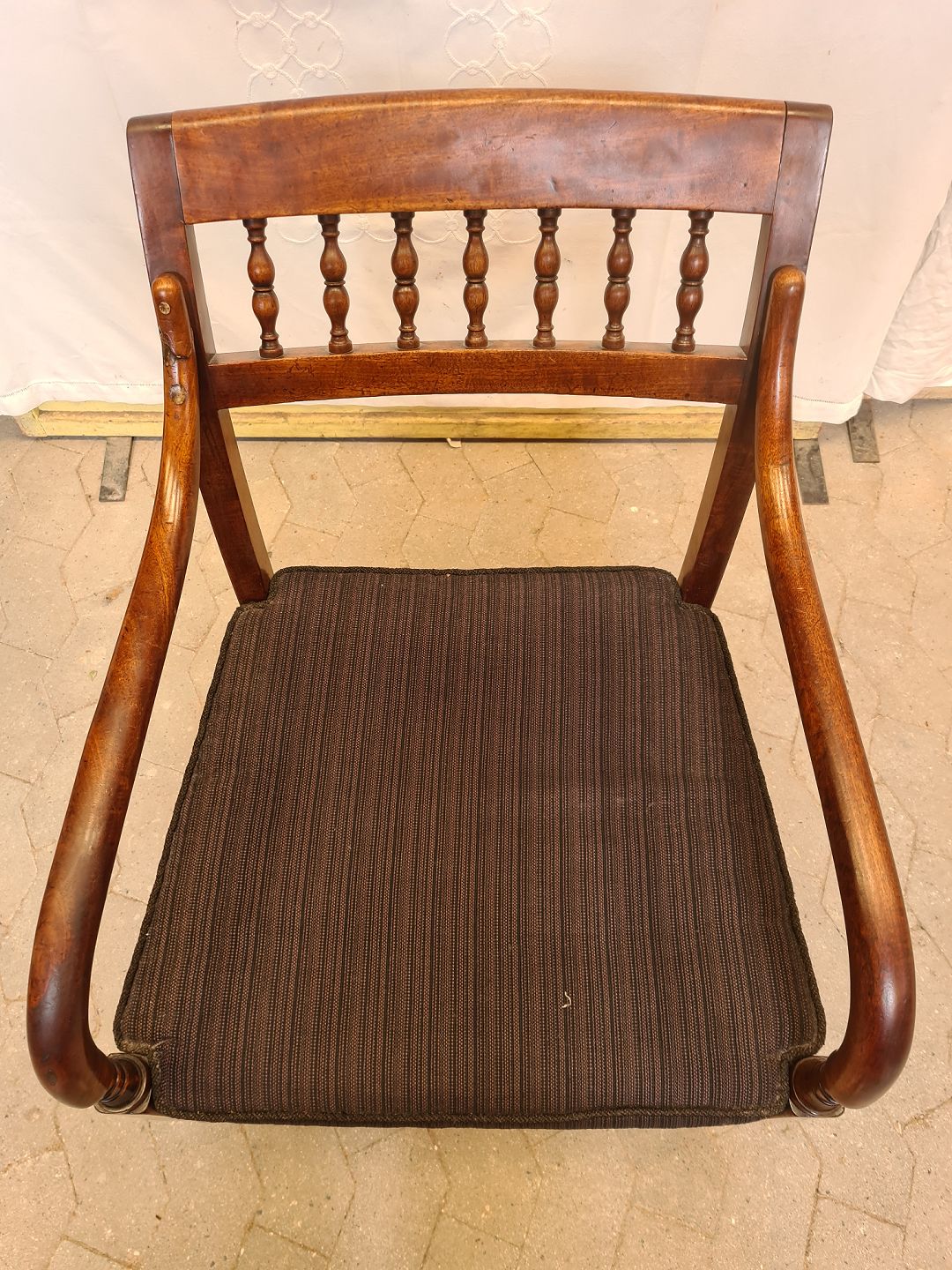 Armstol i massivt bejdset bøgetræ, fra 1900erne. Den har brugsspor. Ryghøjde 85cm Sædehøjde 45cm Emne nummer: 90629