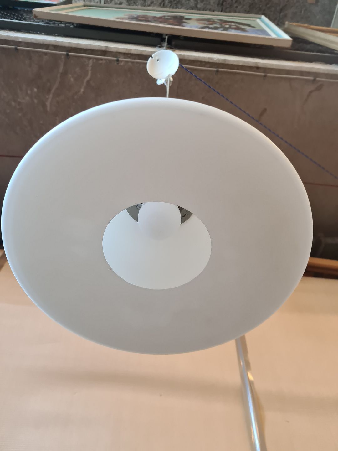 Loftlampe i glas og stål, fra 2000erne. Højde 17cm Diameter35cm Højde med metalstang 44cm Emne nummer: 74318