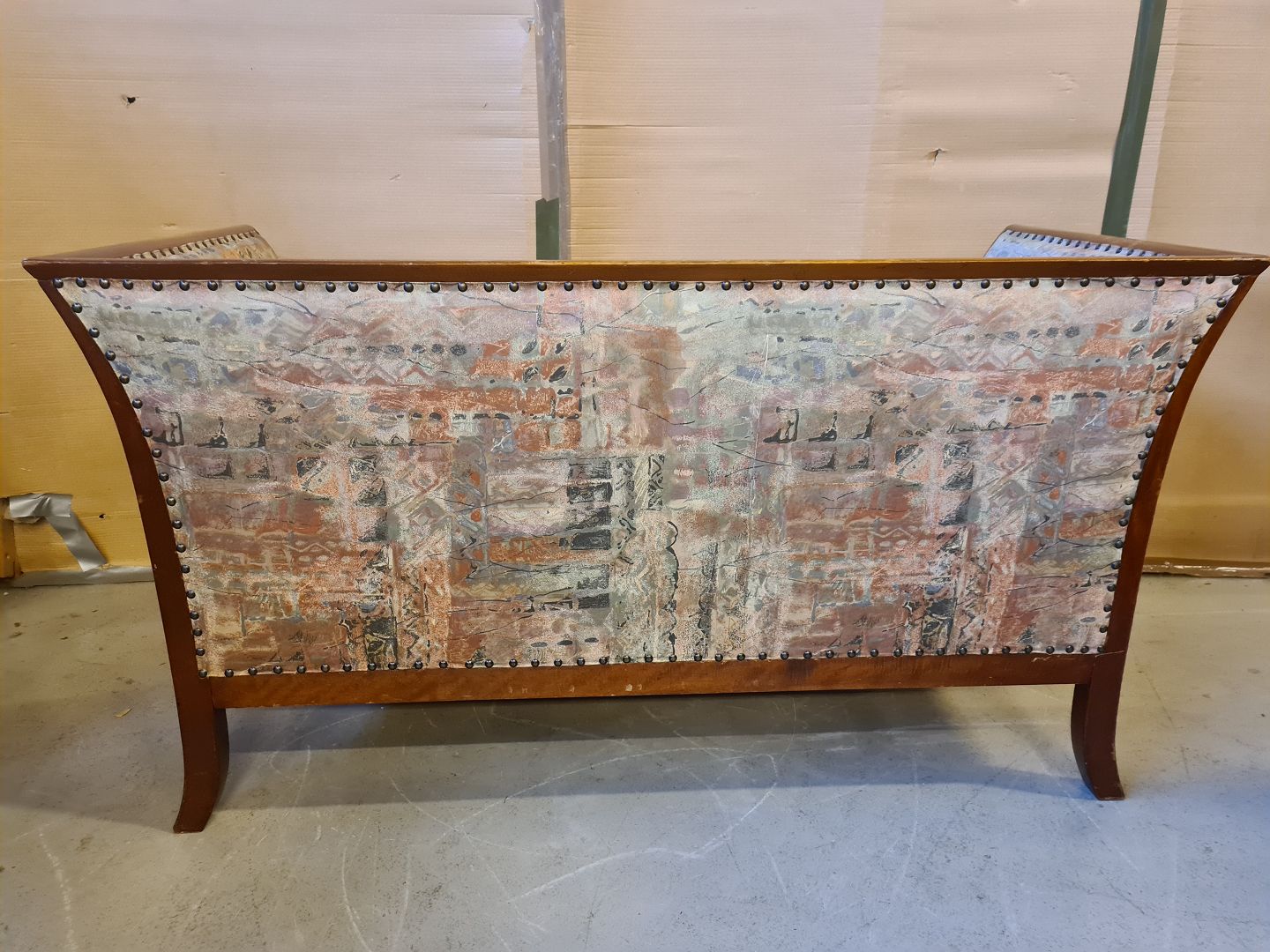 Sofa i mahogni, fra 1950erne. Den har brugsspor. Ryghæjde 76cm Bredde 142cm Dybde 72cm Sædehøjde 44cm Emne nummer: 74426