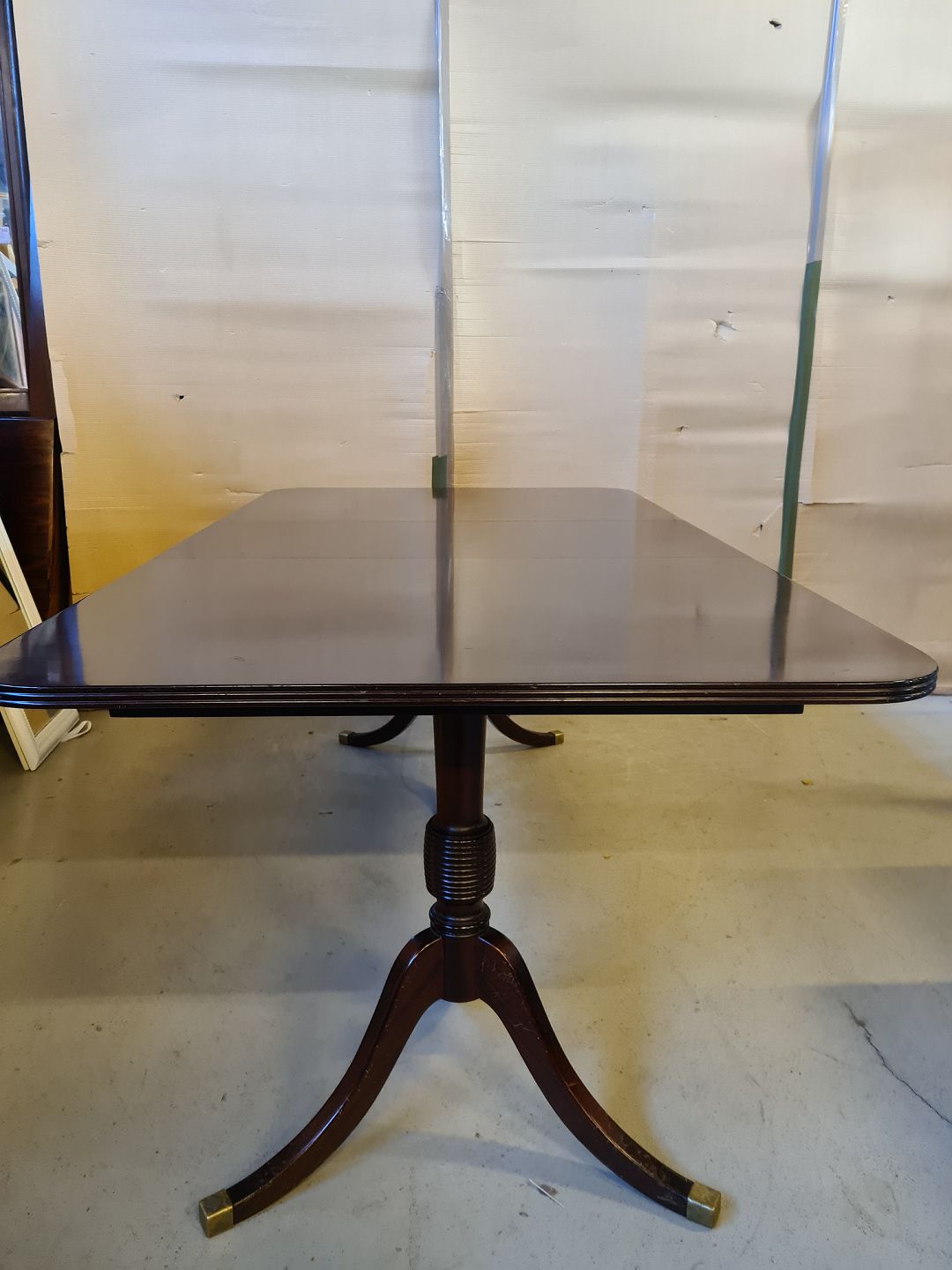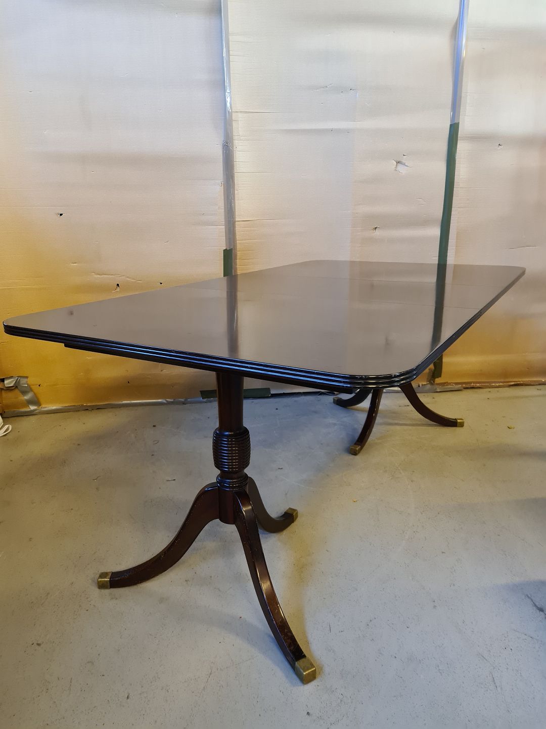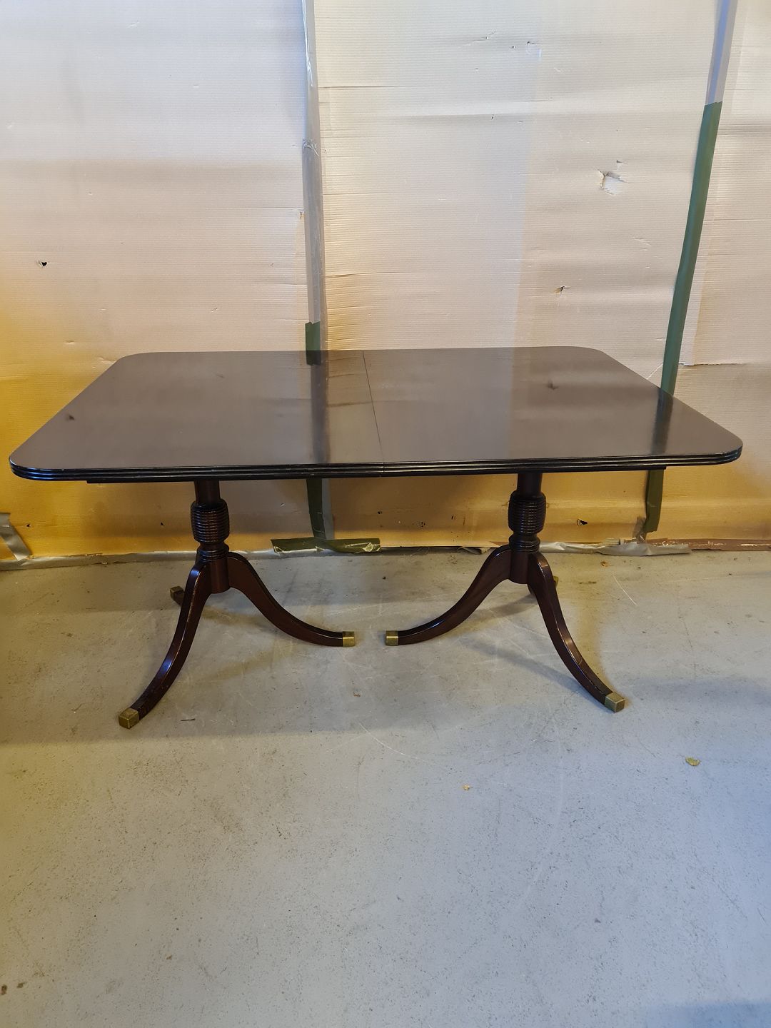 Spisebord i fineret mahogni, fra 1980erne. Der medfølger 1 tillægsplade. Det har brugsspor. Højde 72cm Bredde 100cm Længde 140cm Længde med tillægsplade 185cm Emne nummer: 74457