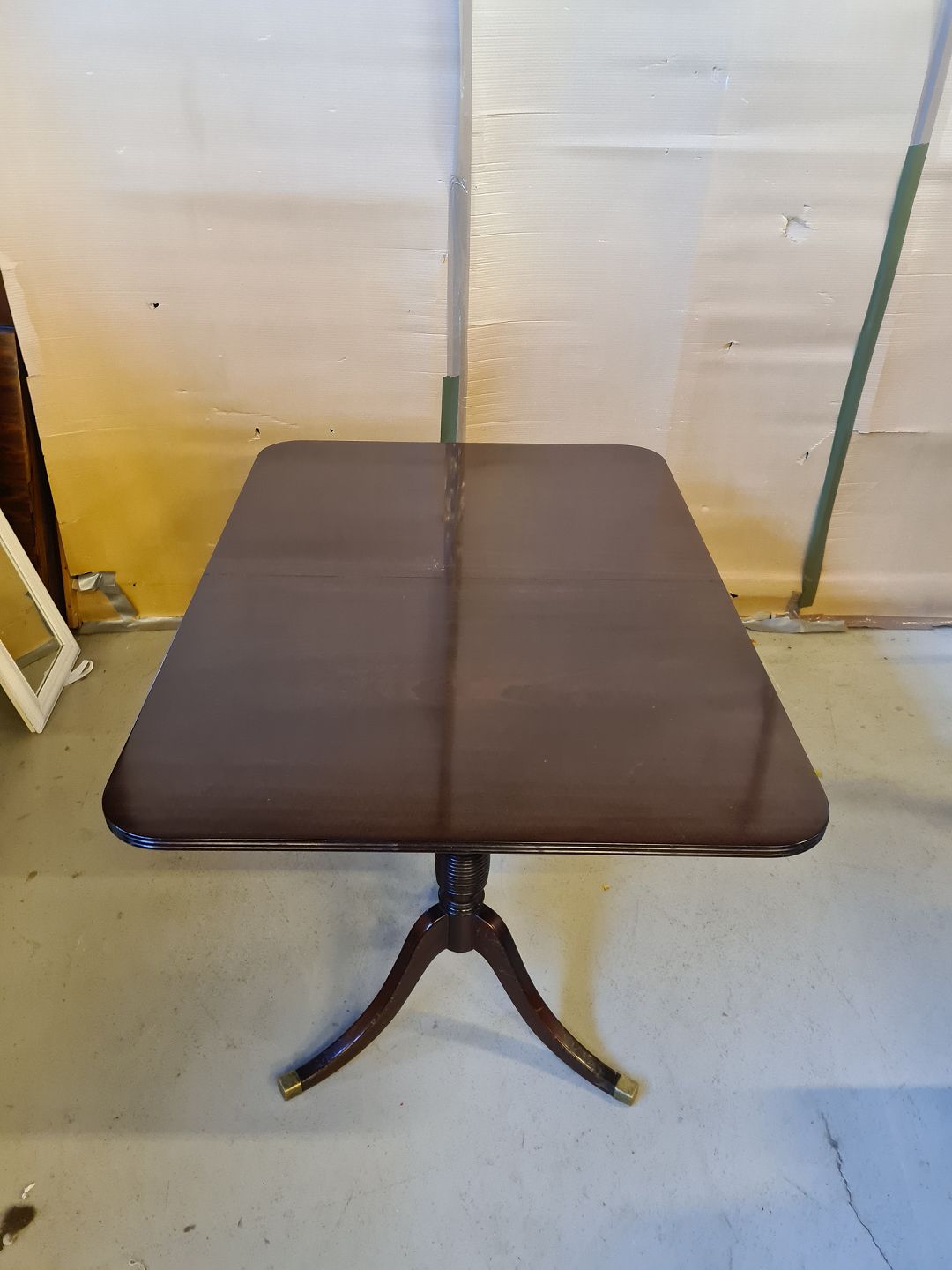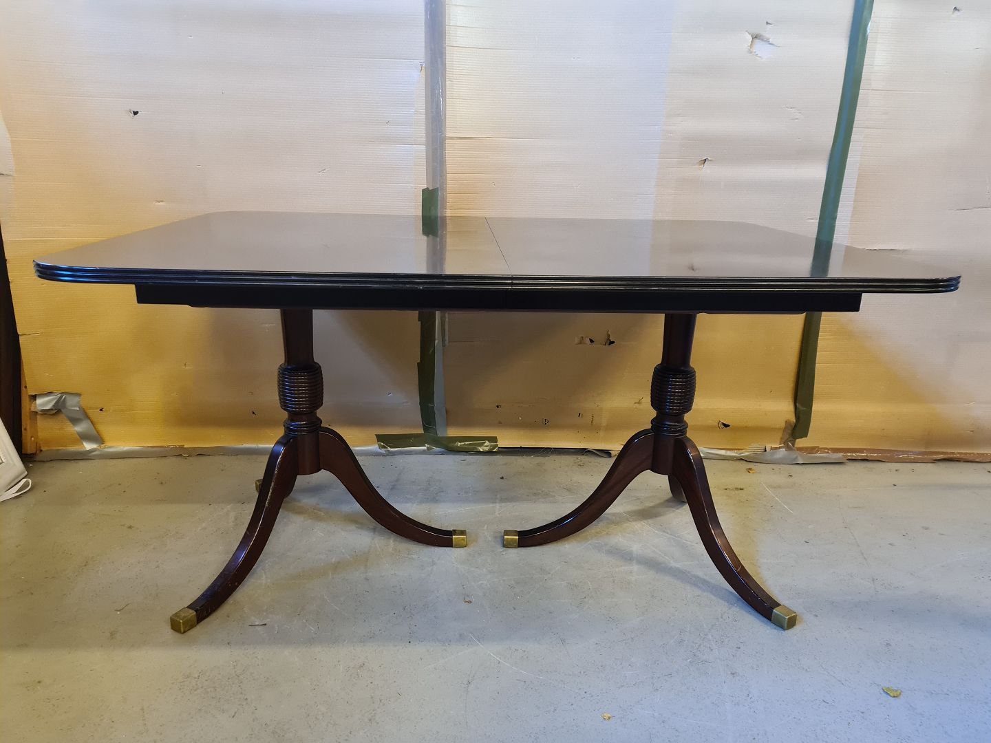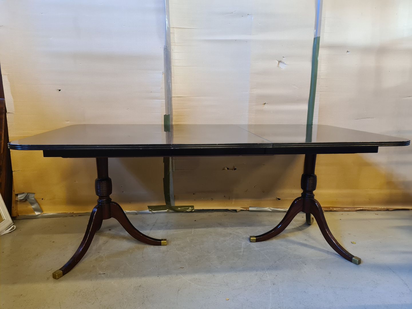 Spisebord i fineret mahogni, fra 1980erne. Der medfølger 1 tillægsplade. Det har brugsspor. Højde 72cm Bredde 100cm Længde 140cm Længde med tillægsplade 185cm Emne nummer: 74457