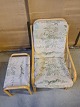 Bambus lænestol med fodskammel, fra 1990erne. Betrækket er slidt. Ryghøjde 97cm Sædehøjde 43cm Emne nummer: 74556