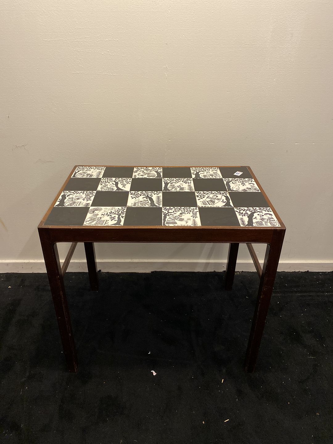 Lampebord i mahogni med kakler. Fremstår pænt og velholdt uden nævneværdige brugsspor. HxLxB 59x63x43 cm. Emne nummer: 80316