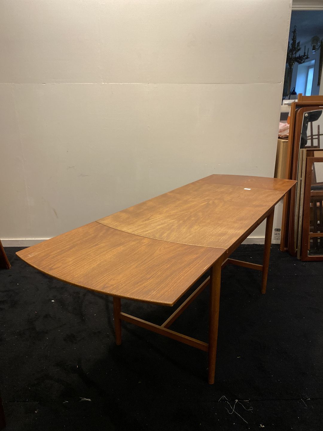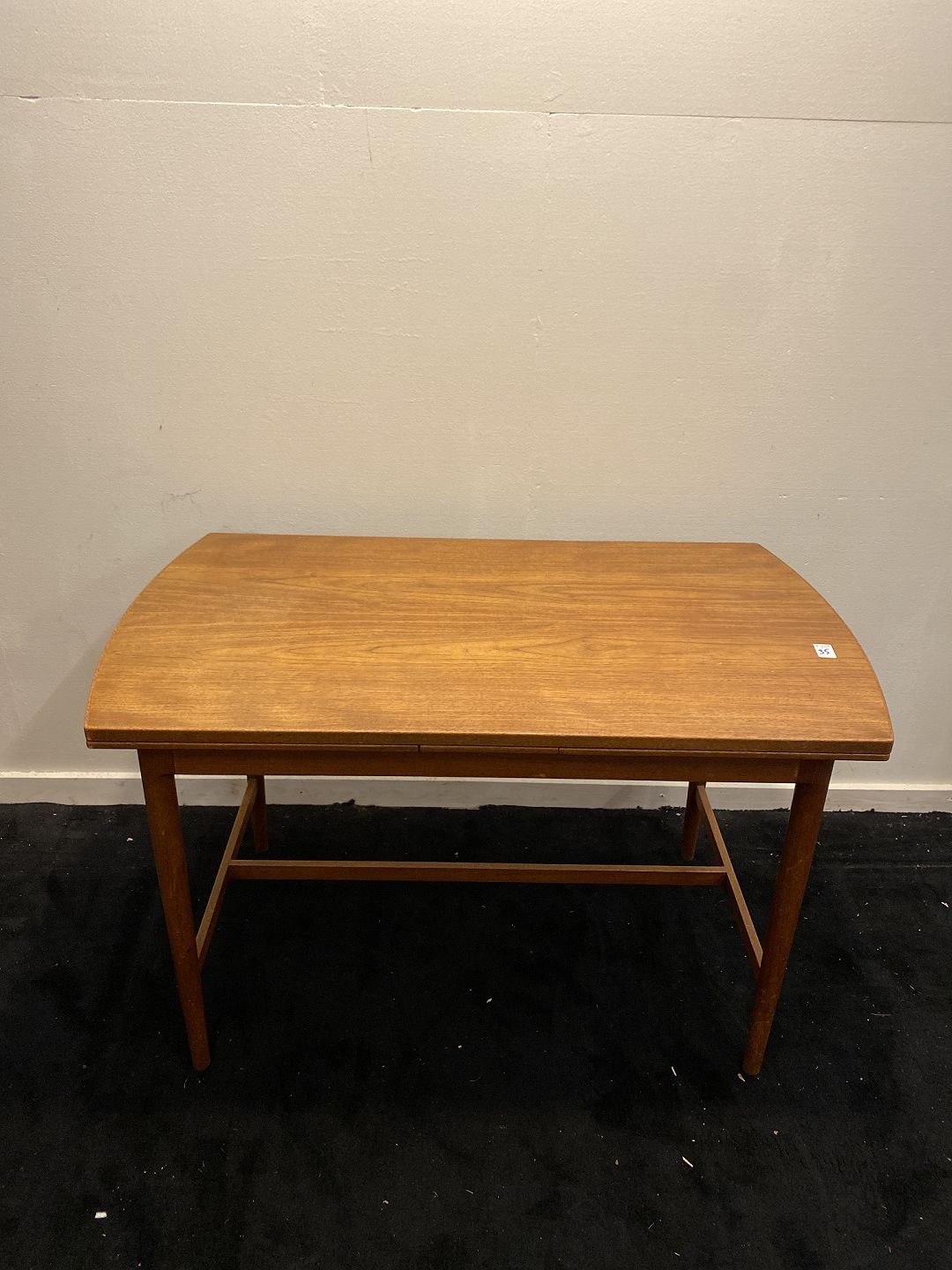 Sofabord i teak med hollandsk udtræk. Fremstillet i 1960´erne. Fremstår udmærket funktionelt uden nævneværdige brugsspor. HxLxB 59x93x55 cm. Længde med udtræk 165 cm. Emne nummer: 80323