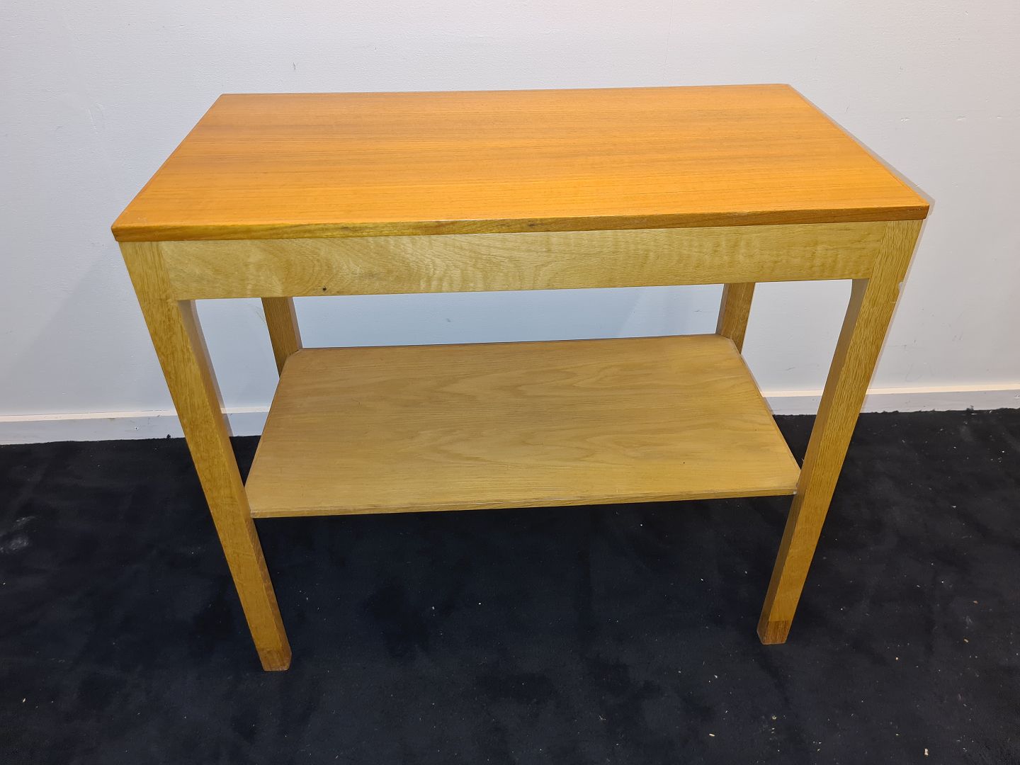 Anretterbord i teak og eg fra SKM møbler. Fremstår pænt og velholdt uden nævneværdige brugsspor. HxLxB 73x80x42 cm. Emne nummer: 80390