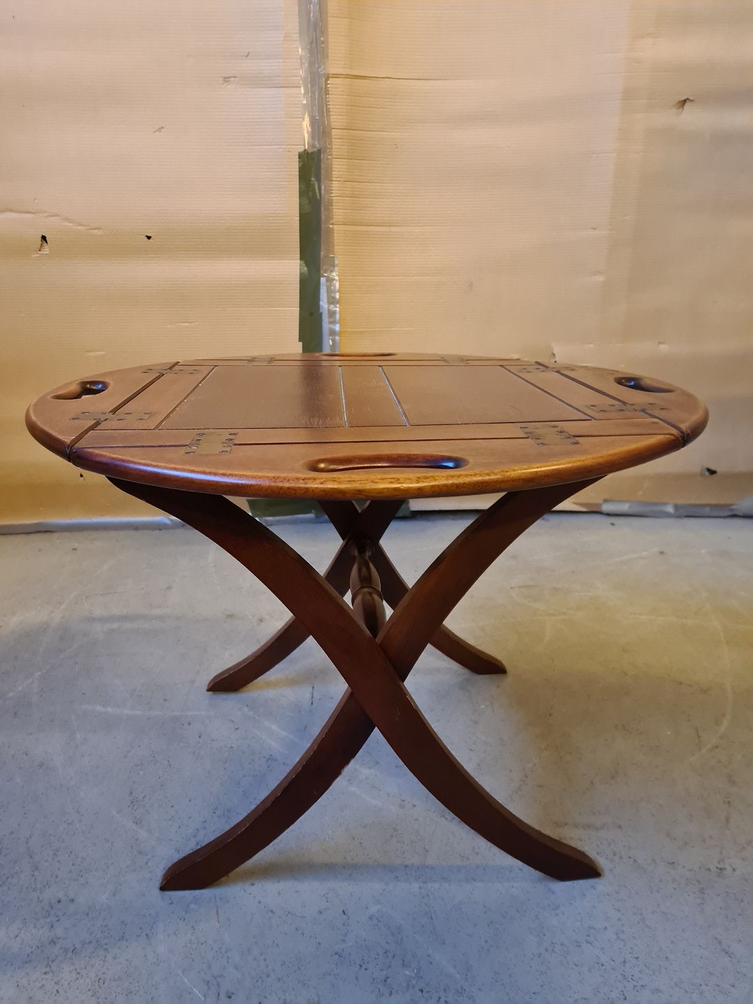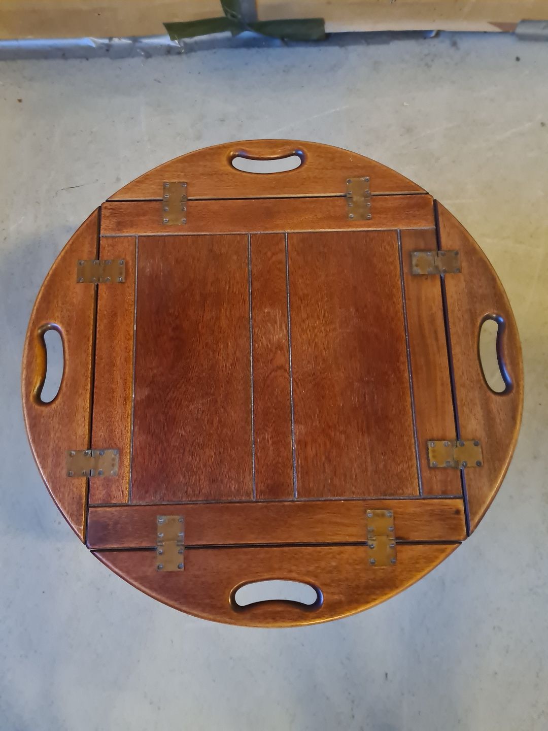 Butlers tray i mahogni og bøgetræ, fra 1980erne. Det har brugsspor. Højde 47cm Bredde 65cm Længde 65cm Emne nummer: 74916