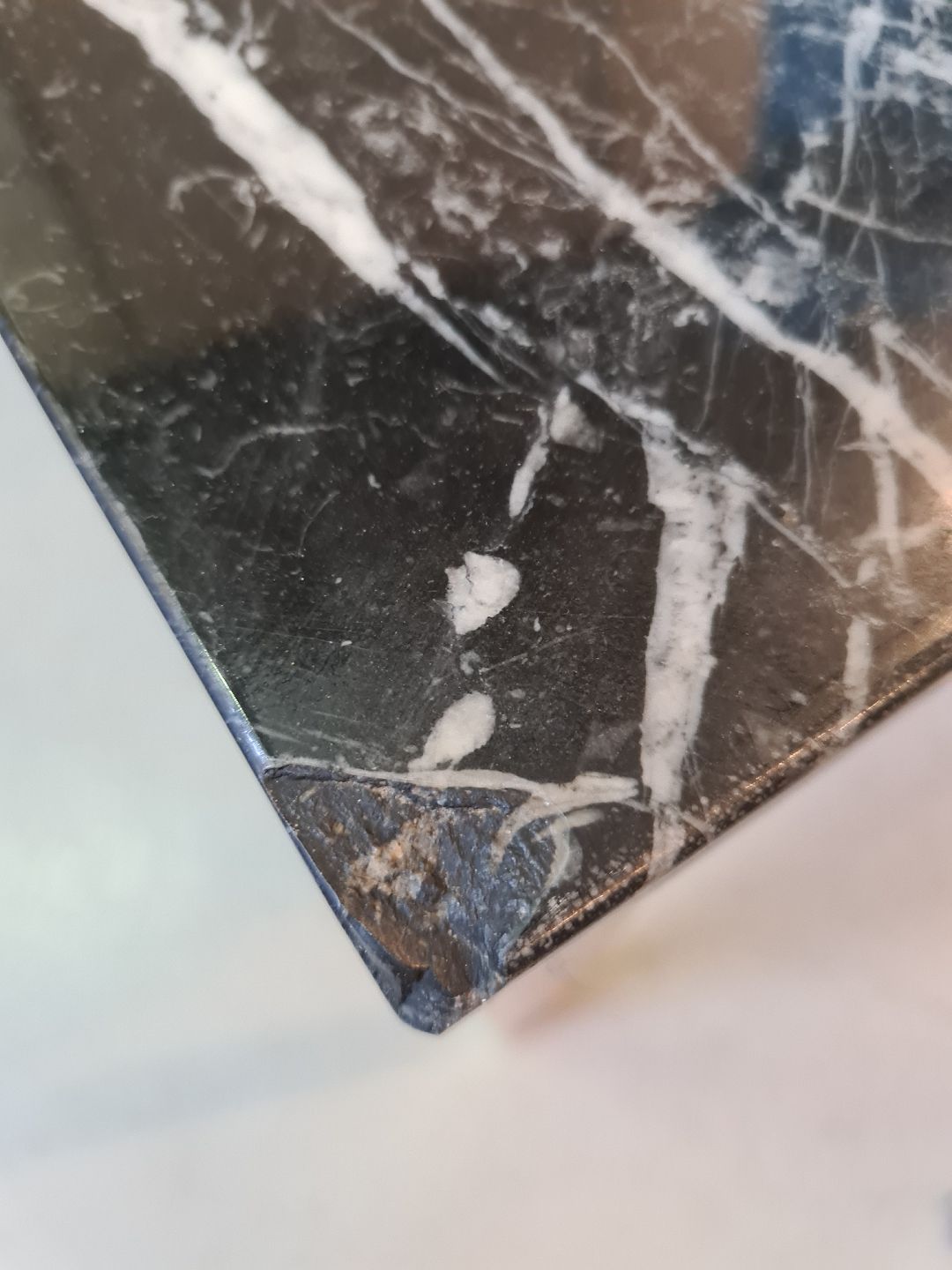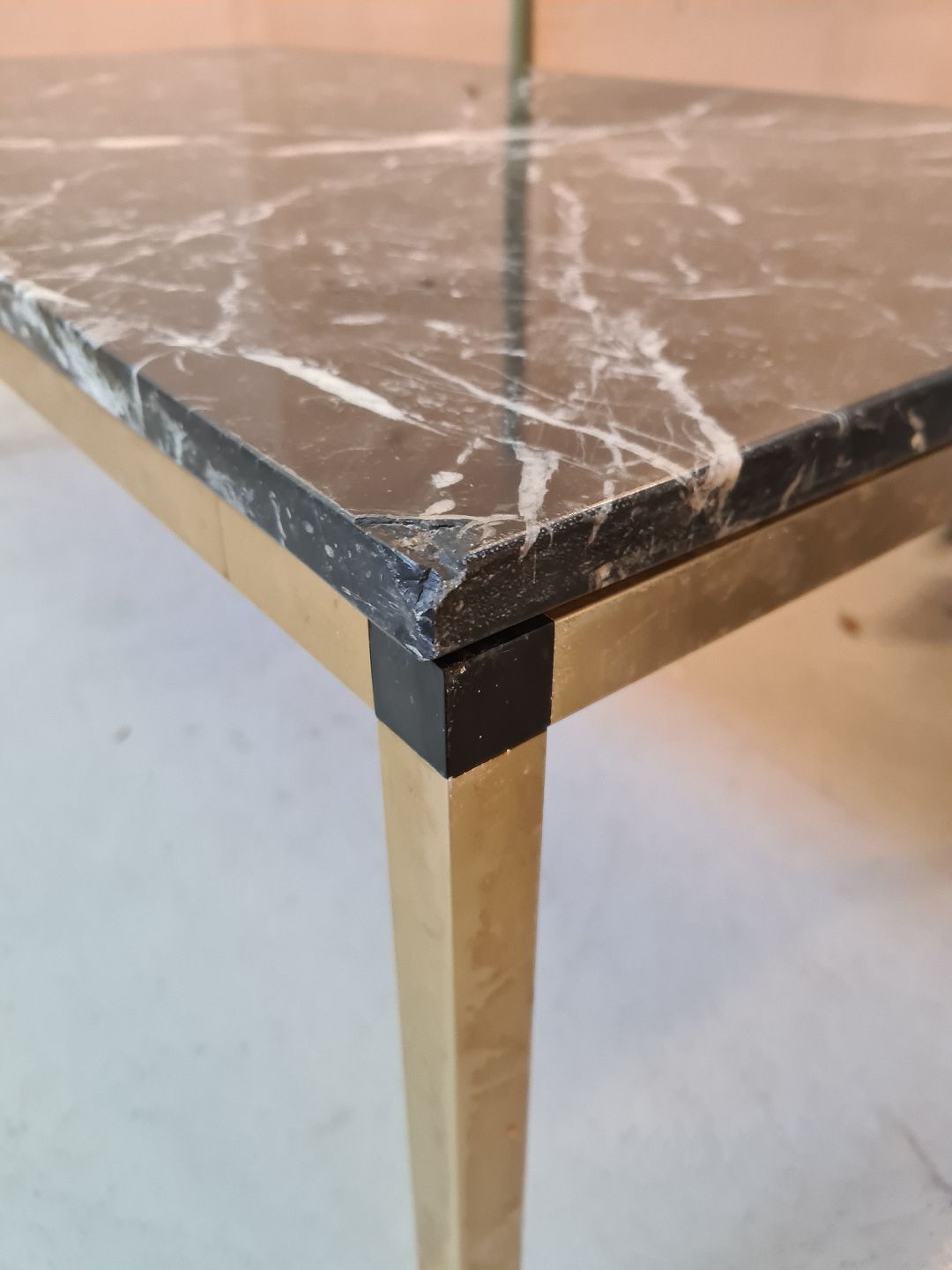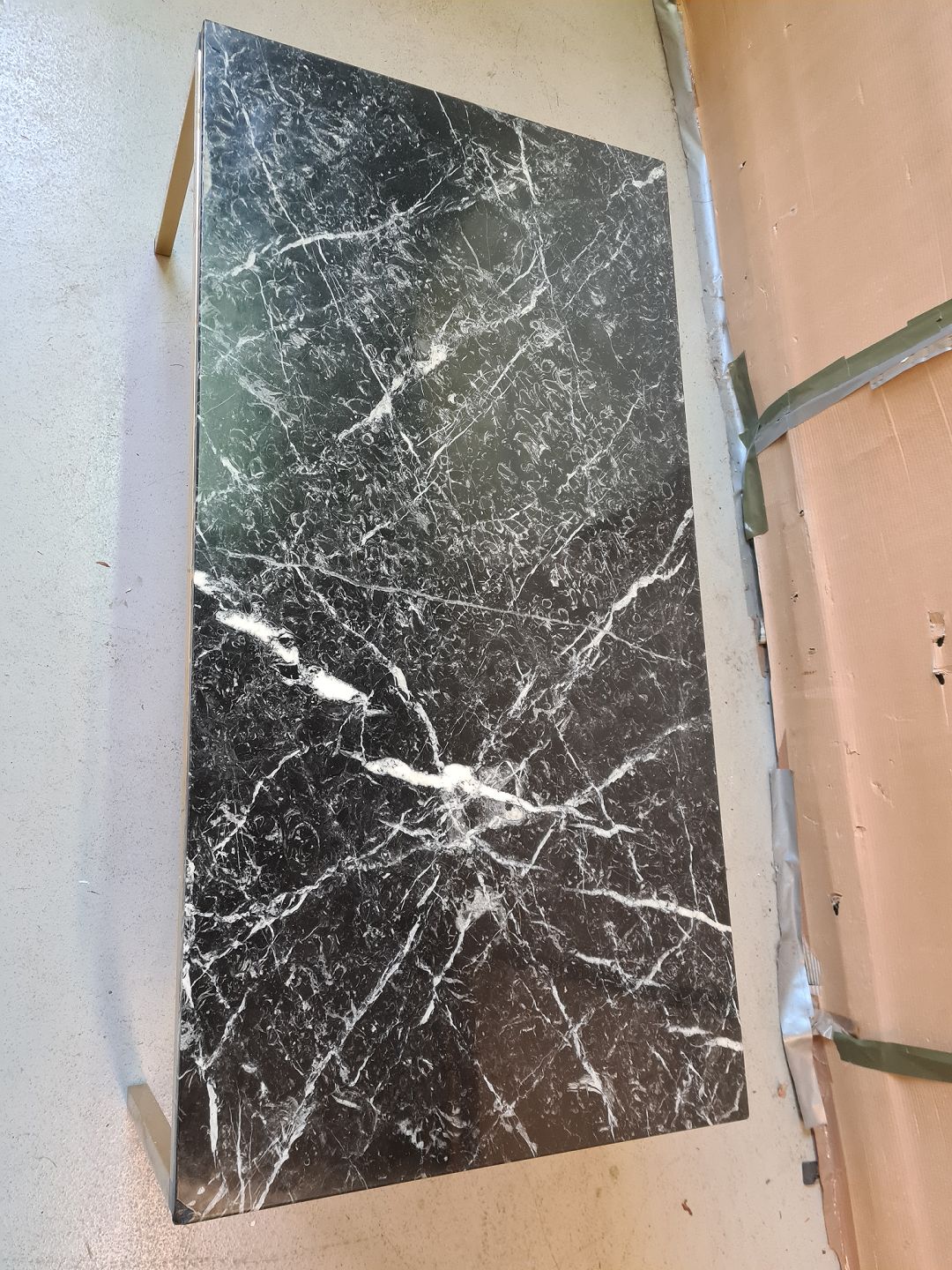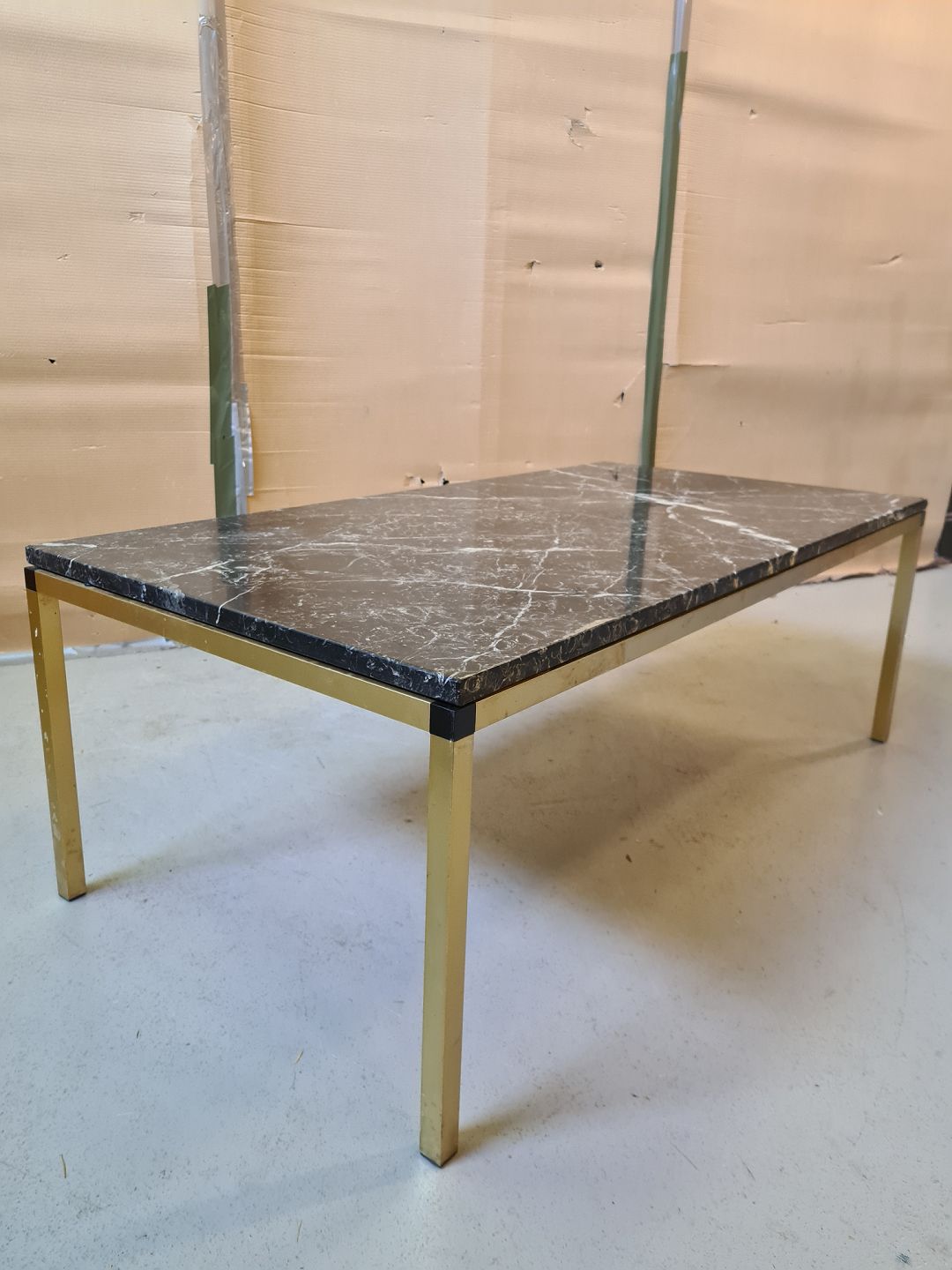 Sofabord i metal med marmorplade, fra 1980erne. Det har brugsspor og en defekt på hjørnet. Højde 45cm Bredde 65cm Længde 127cm Emne nummer: 76306