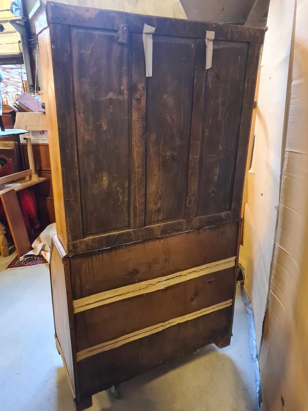Chatol i massivt egetræ, fra 1890erne. Det har patina og en revne i det ene glas i lågen. Højde 191cm Bredde 127cm Dybde 55cm Emne nummer: 75052