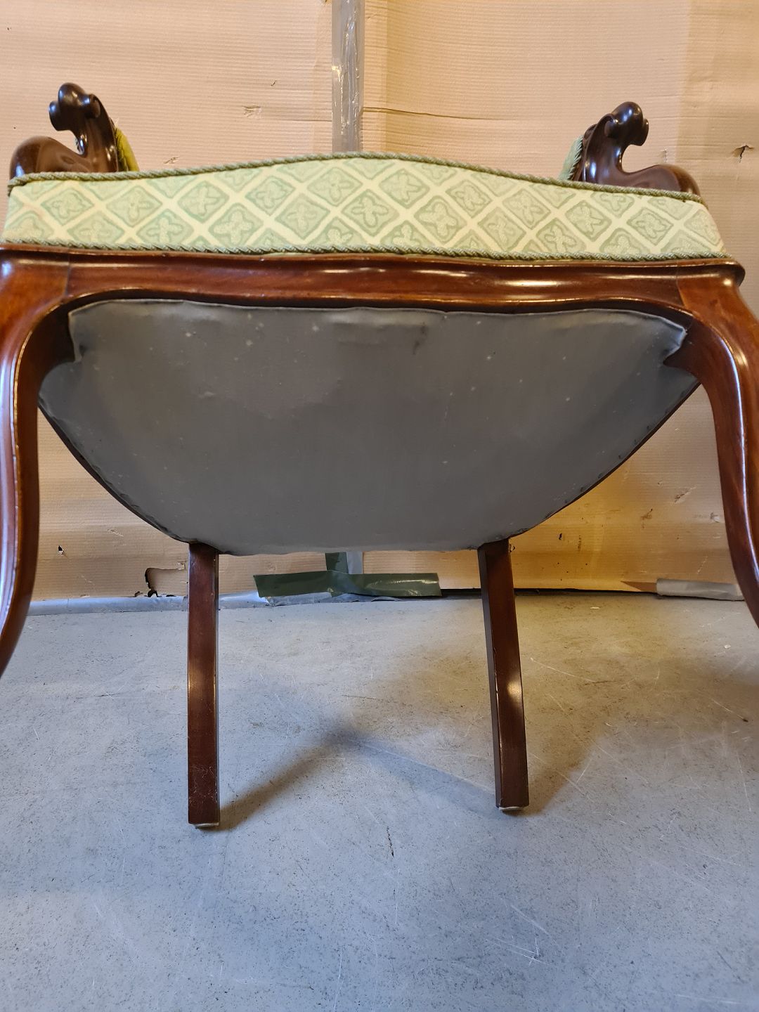 Armstol i mahogni, fra 1910erne. Den har defekt betræk på armlænet. Ryghøjde 102cm Sædehøjde 45cm Emne nummer: 75053