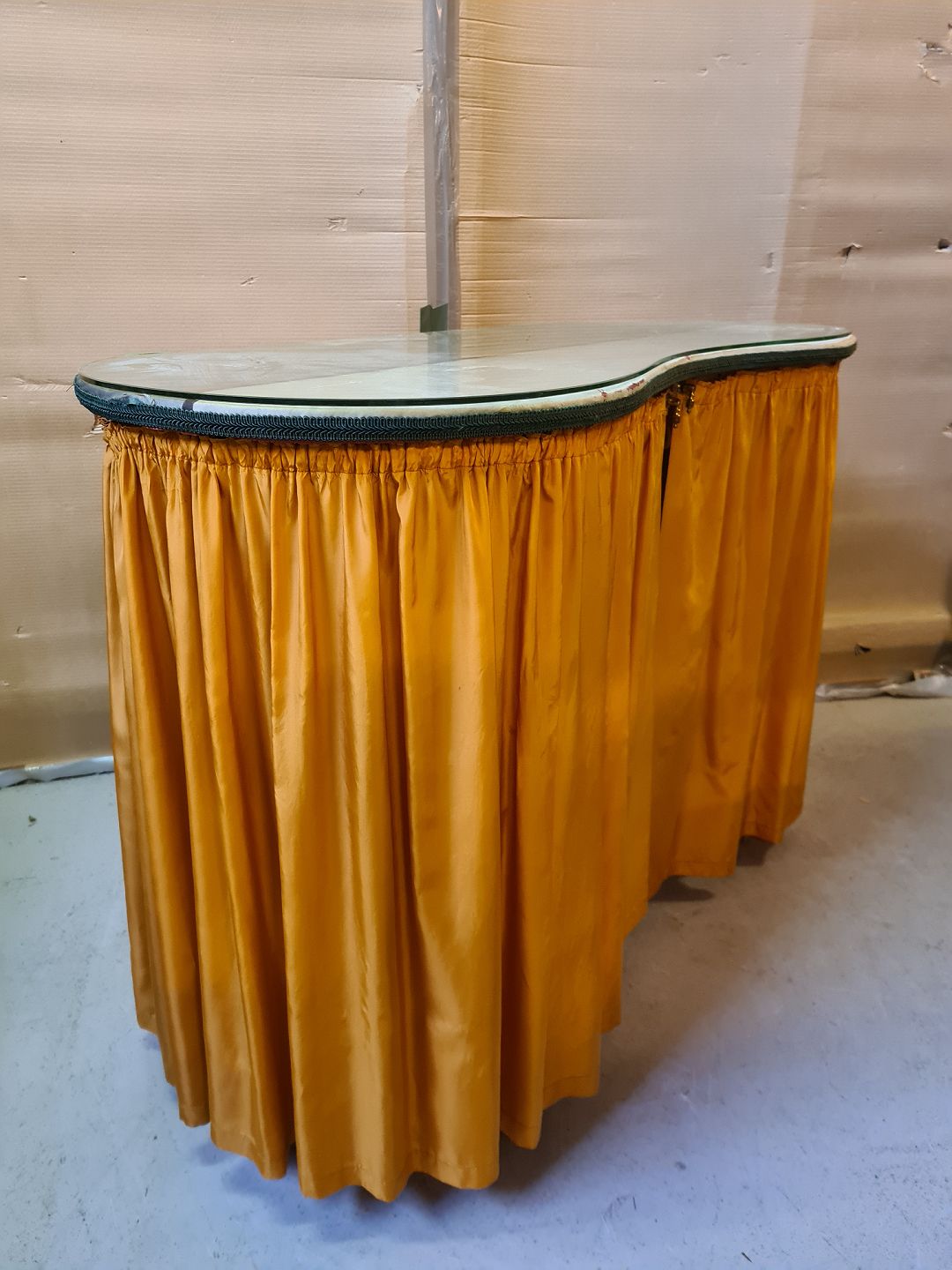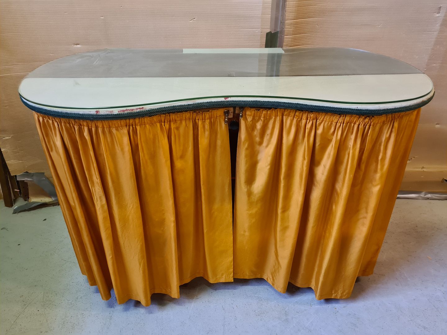 Marie Antoinette sminkebord med glasplade, fra 1930erne. Det har brugsspor. Højde 77cm Bredde 110cm Dybde 50cm Emne nummer: 75091