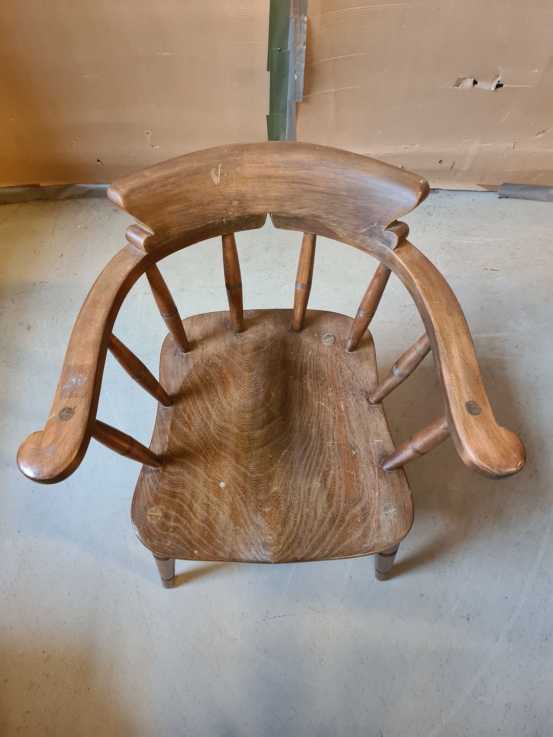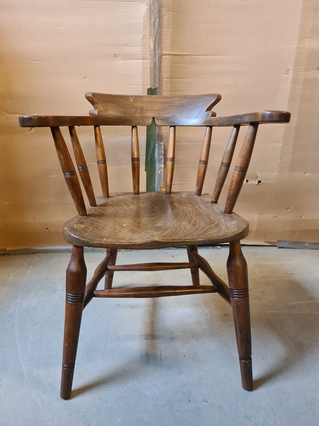 Armstol i massivt bøge og birketræ, fra 1910erne. Den har patina. Ryghøjde 76cm Sædehøjde 44cm Emne nummer: 75142