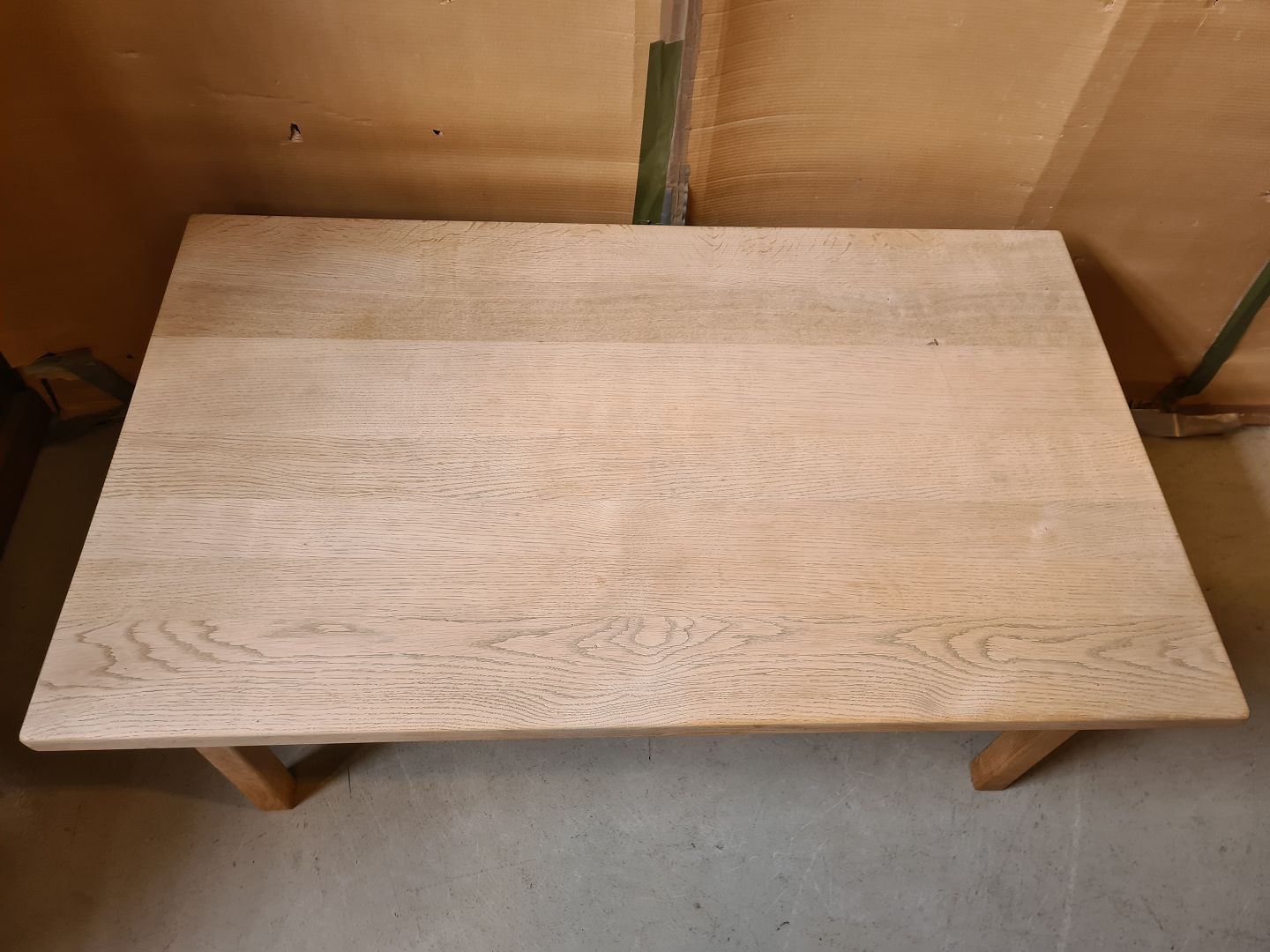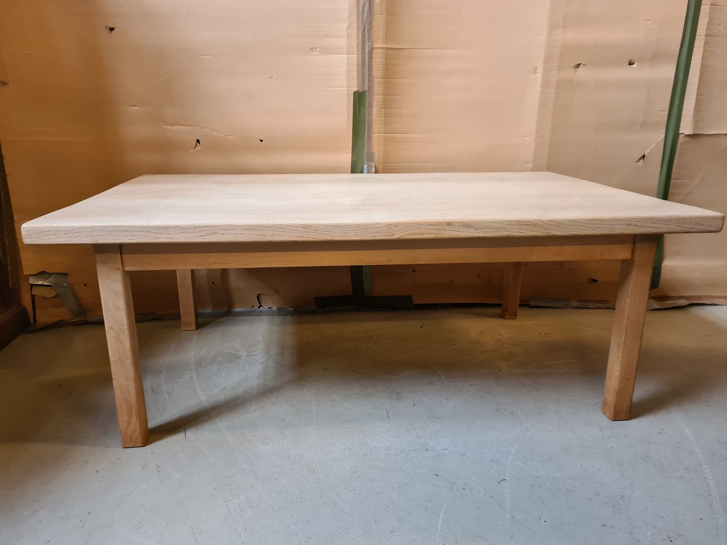 Sofabord i massivt egetræ, fra 1980erne. Det har brugsspor. Højde 52cm Bredde 83cm Længde 140cm Plade tykkelse 4cm Emne nummer: 75148