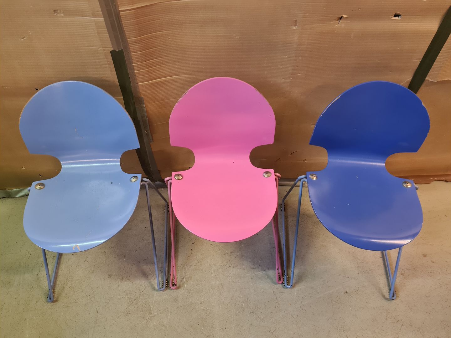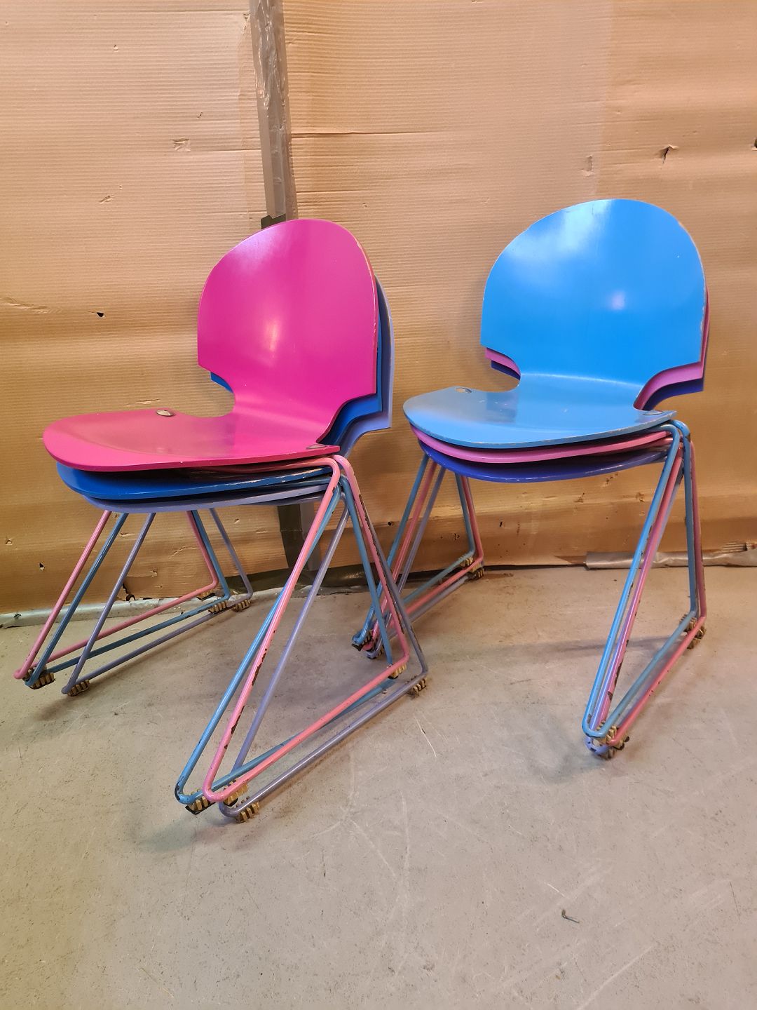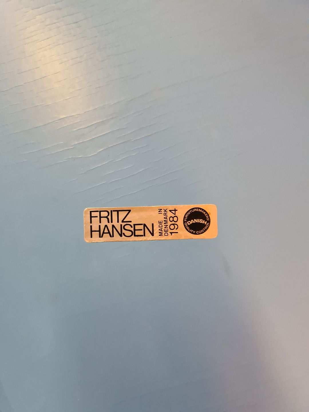 6 Fritz Hansen stole i metal og malet træ, fra 1980erne. De har brugsspor. Ryghøjde 74cm Sædehøjde 43cm Emne nummer: 75207