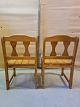 2 Stole i massivt fyrretræ, fra 1980erne. De har brugsspor og pudebetrækket er slidt. Ryghøjde 83cm Sædehøjde 43cm Emne nummer: 75211