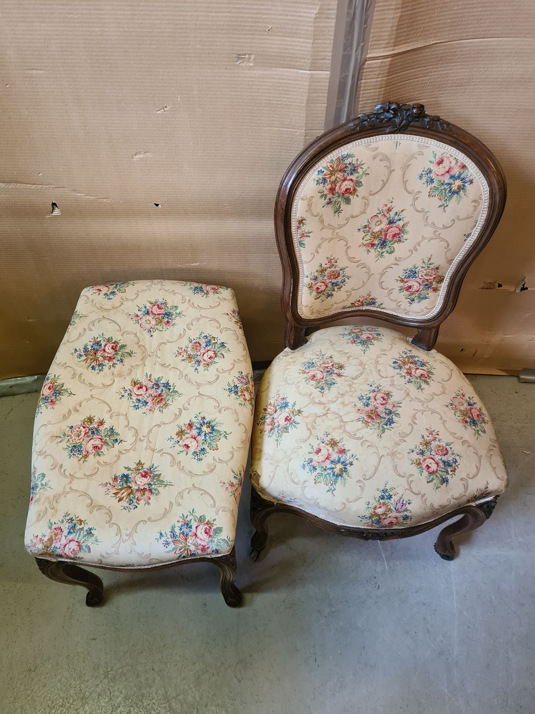 Stol og skammel i massivt bøgetræ, fra 1950erne.