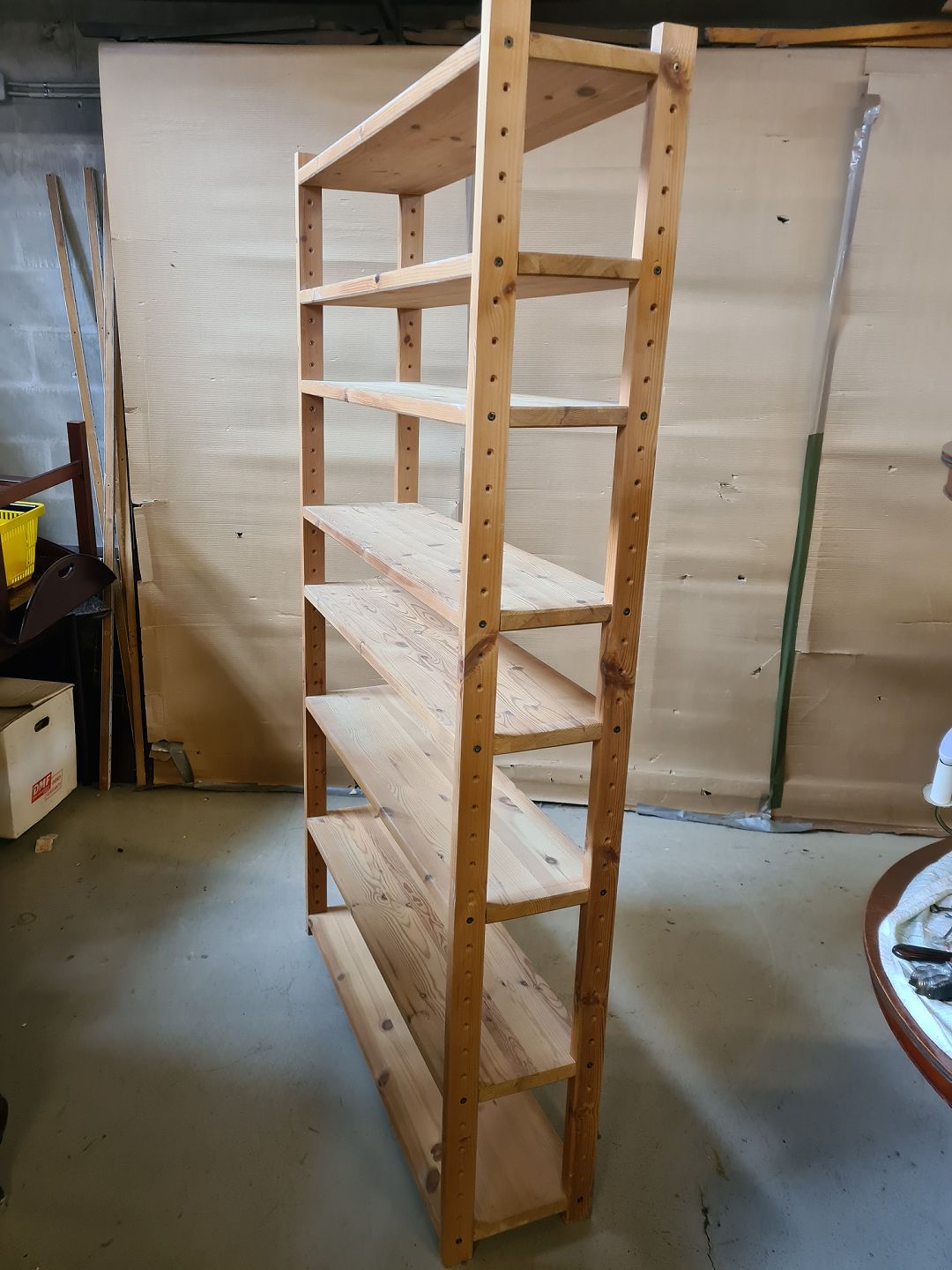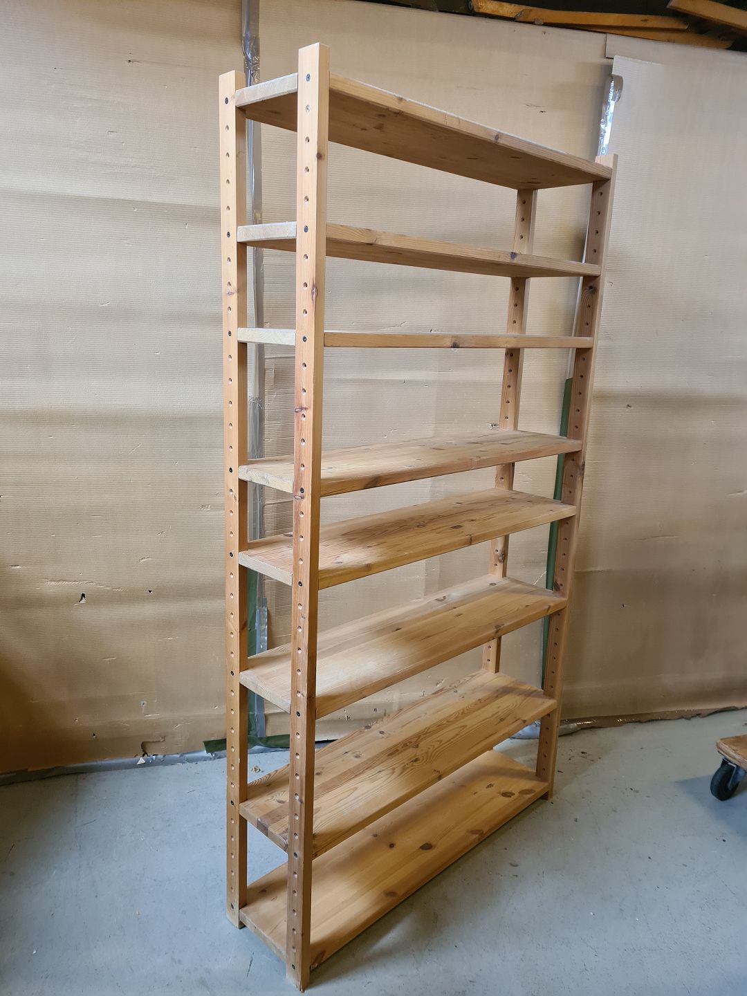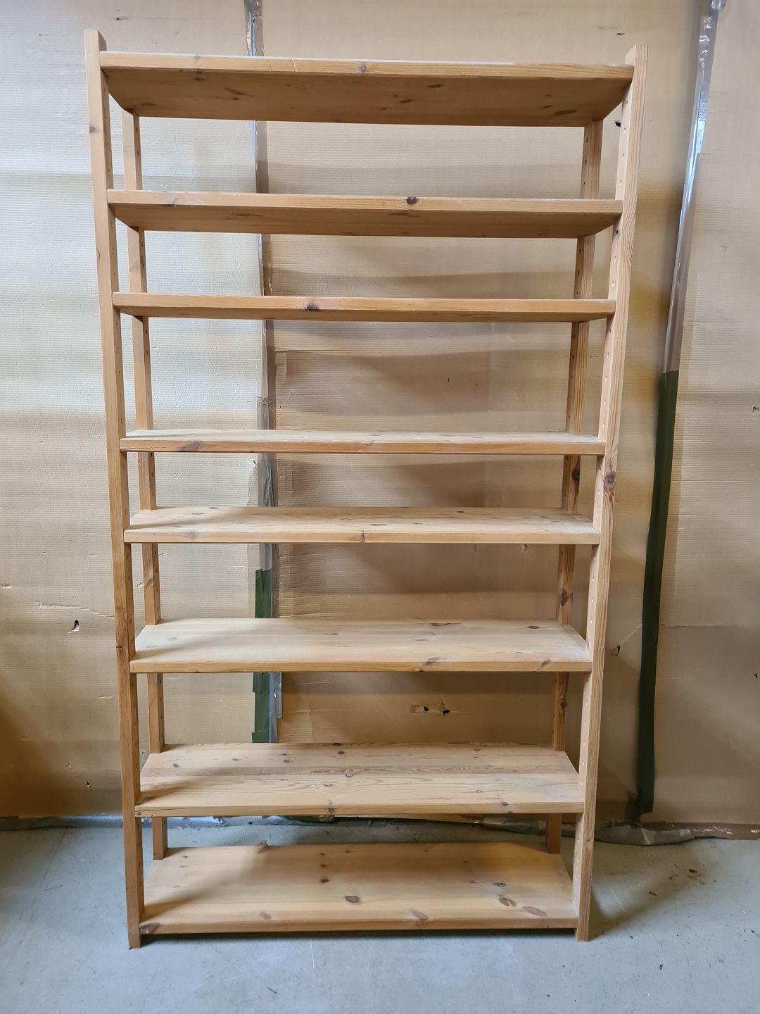 Reol i massivt fyrretræ, fra 1990erne. Den har brugsspor. Højde 200cm Bredde 111cm Dybde 30cm Emne nummer: 75340