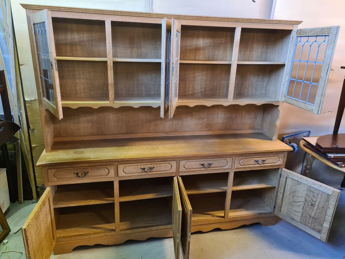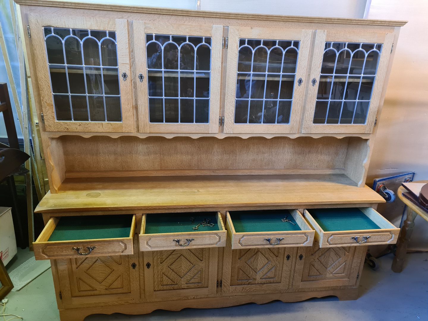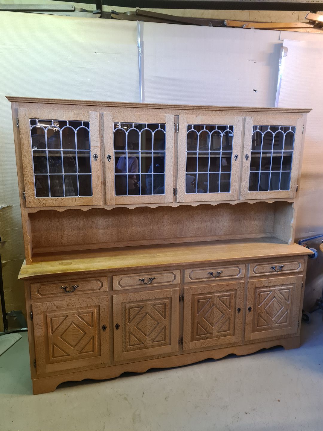 Buffet i massivt og fineret egetræ, fra 1980erne. Den har små brugsspor. Højde 180cm Bredde 200cm Dybde 45cm Emne nummer: 75420