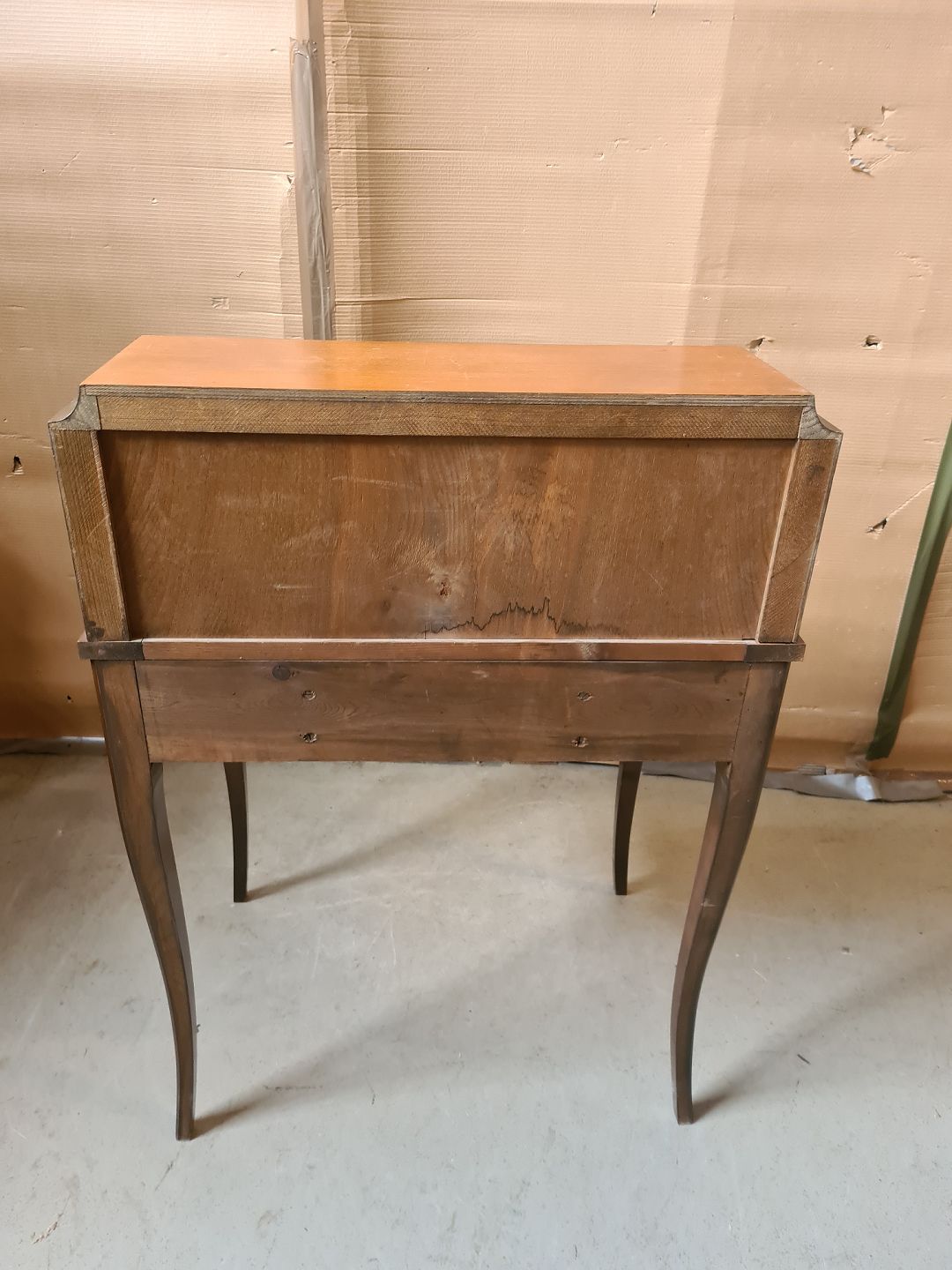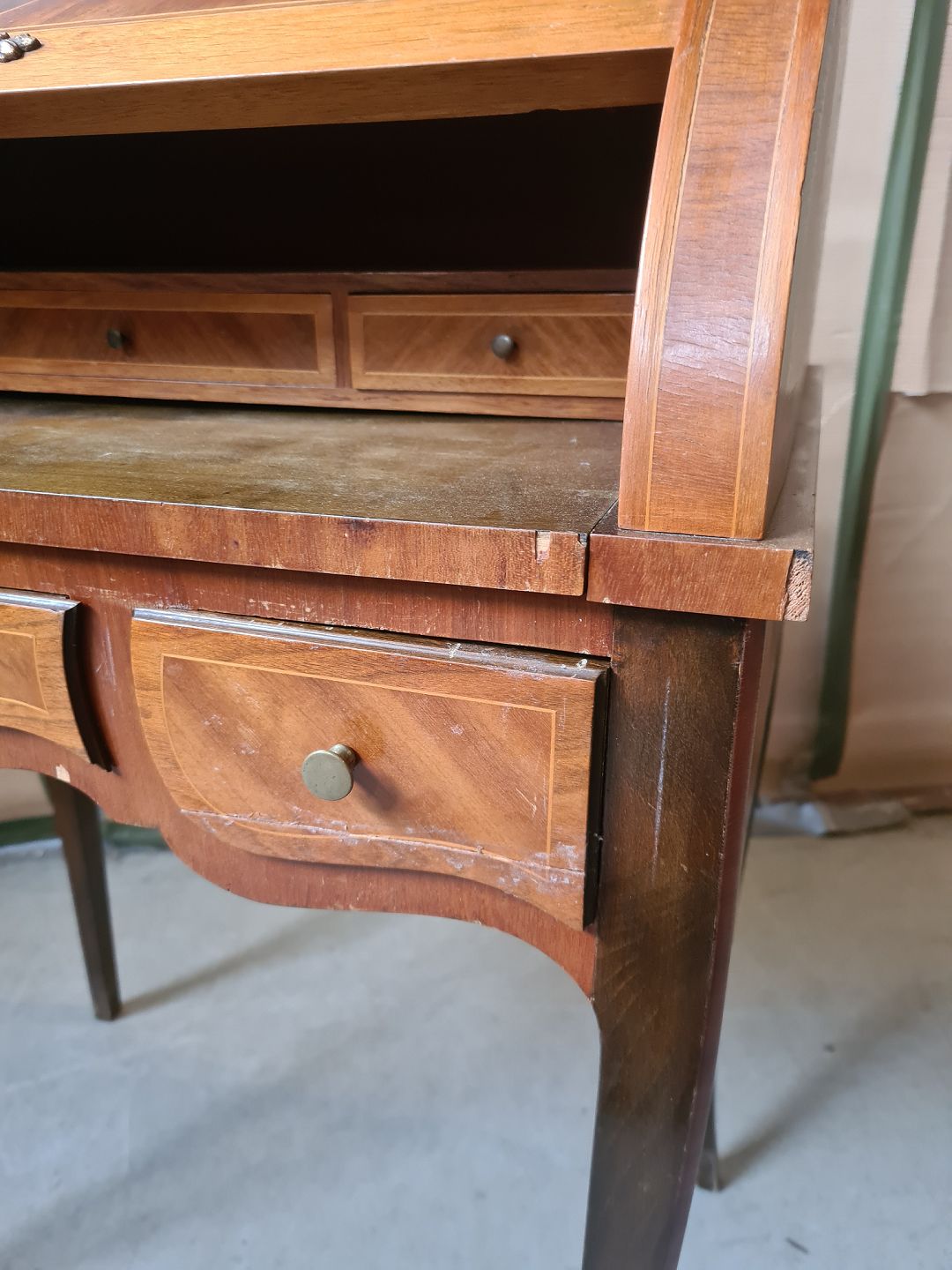 Chatol i fineret mahogni, fra 1980erne. Det har brugsspor og klappen kan ikke komme helt ned. Højde 100cm Bredde 70cm Dybde 47cm Emne nummer: 75515