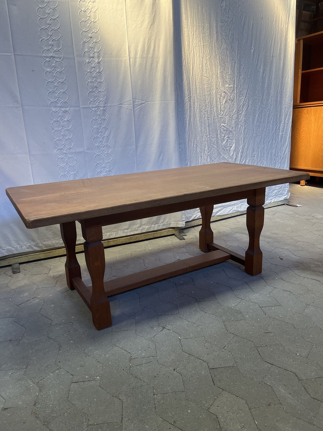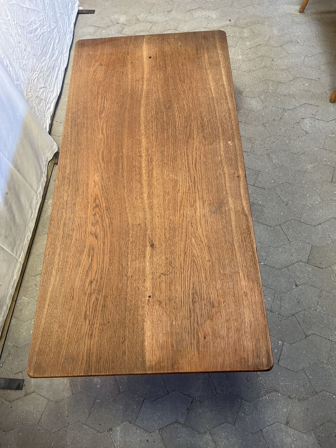 Sofabord i massiv egetræ står uden de store brugsspor. Højde 54 cm. Bredde 135 cm. Dybde 65 cm. Emne nummer: 90689