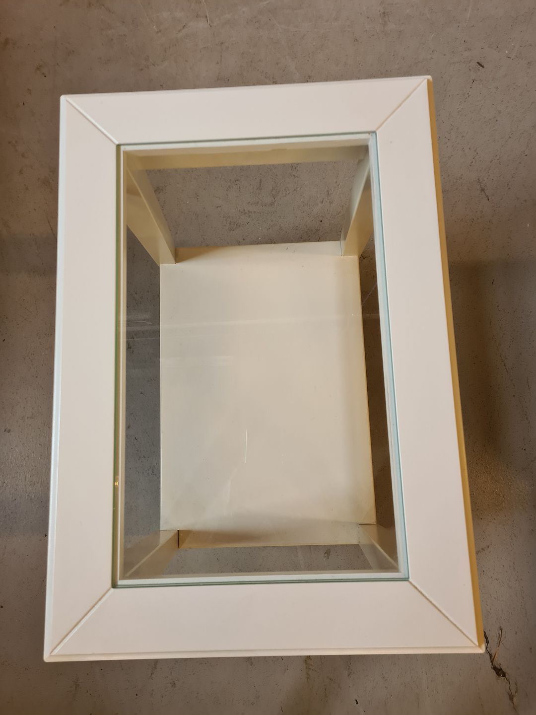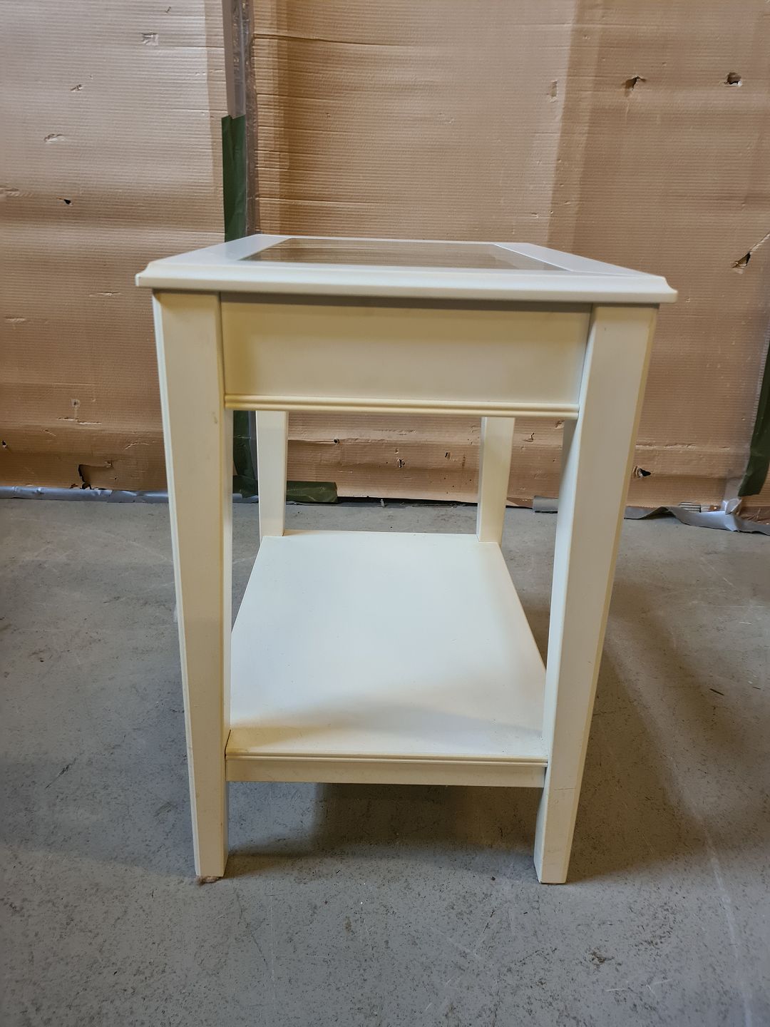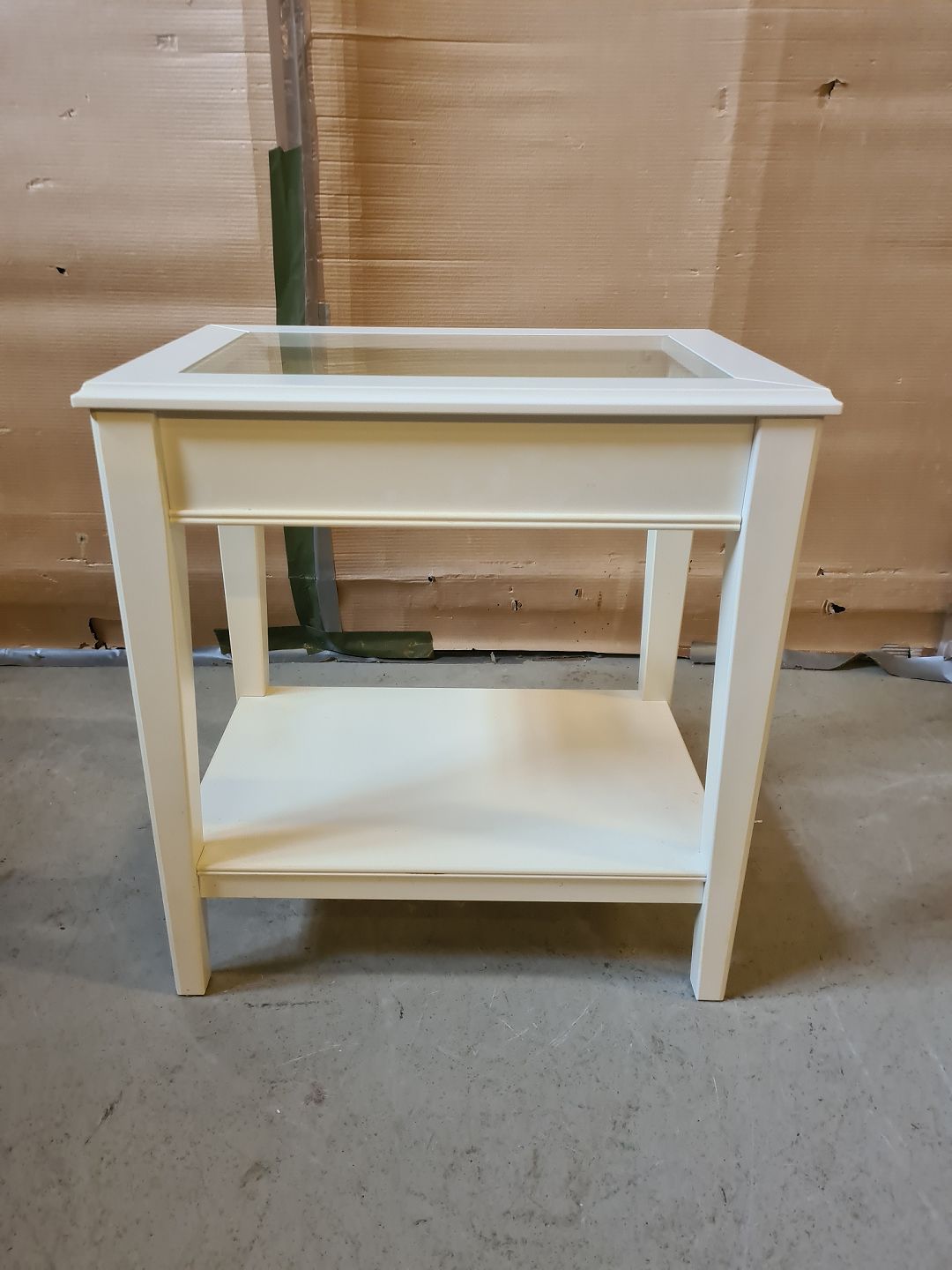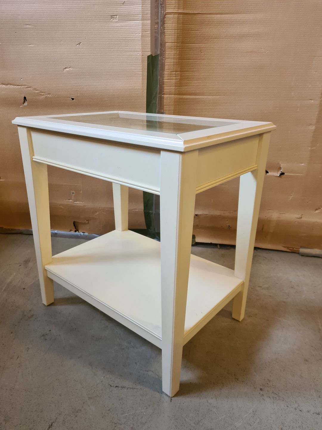 Malet lampebord med glasplade, fra 2000erne. Det har brugsspor. Højden 60cm Bredde 40cm Længde 57cm Emne nummer: 75680