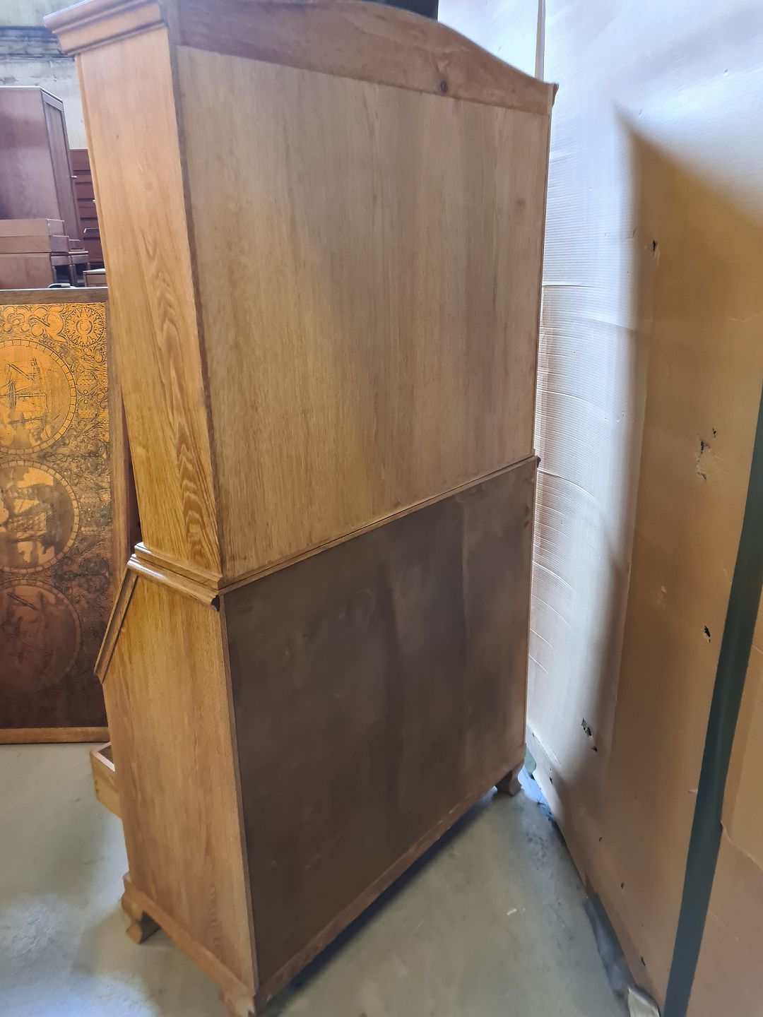 Chatol med overskab i fineret egetræ, fra 1980erne. Det har brugsspor. Højde 205cm Bredde 105cm Dybde 45cm Emne nummer: 75690