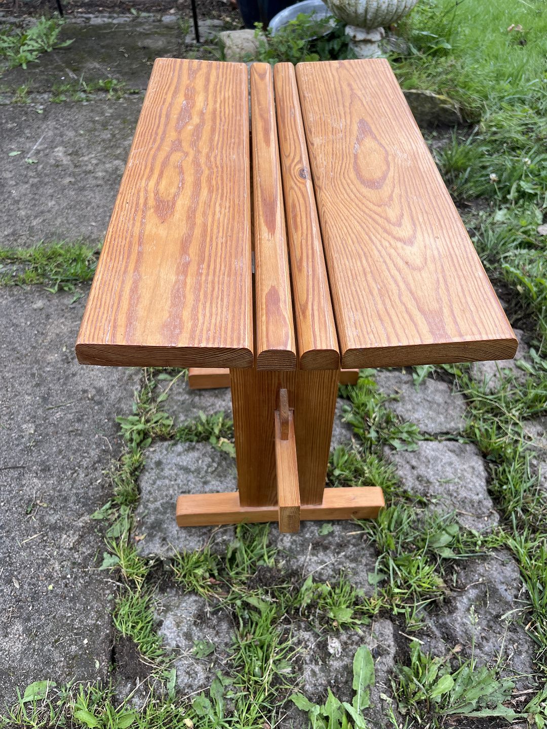 Skammel i massiv fyrtræ Står i pæn brugtstand. Højde 47 cm. Bredde 50 cm. Dybde 32 cm. Se også 80504 Emne nummer: 80505