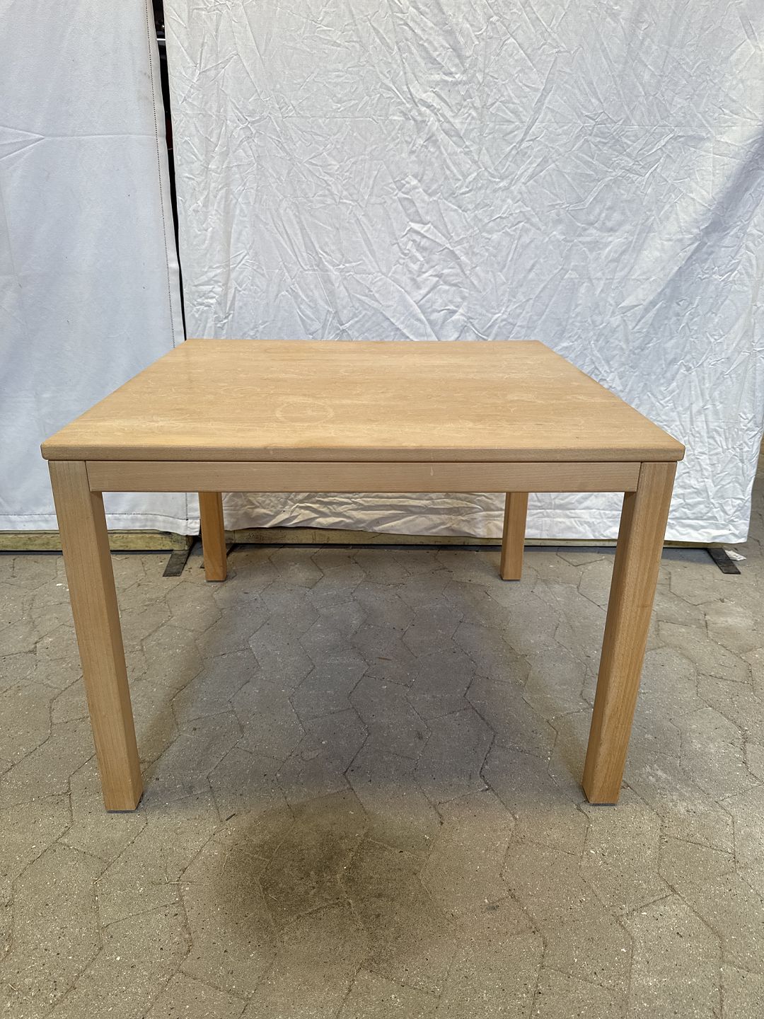 Sofabord fra Haslevmøbelfabrik i massiv bøgetræ af nyere dato. Det har brugsspor og pladen buler en smule. Højde 56 cm. Bredde. 76 cm. Dybde 75 cm. Emne nummer: 90779
