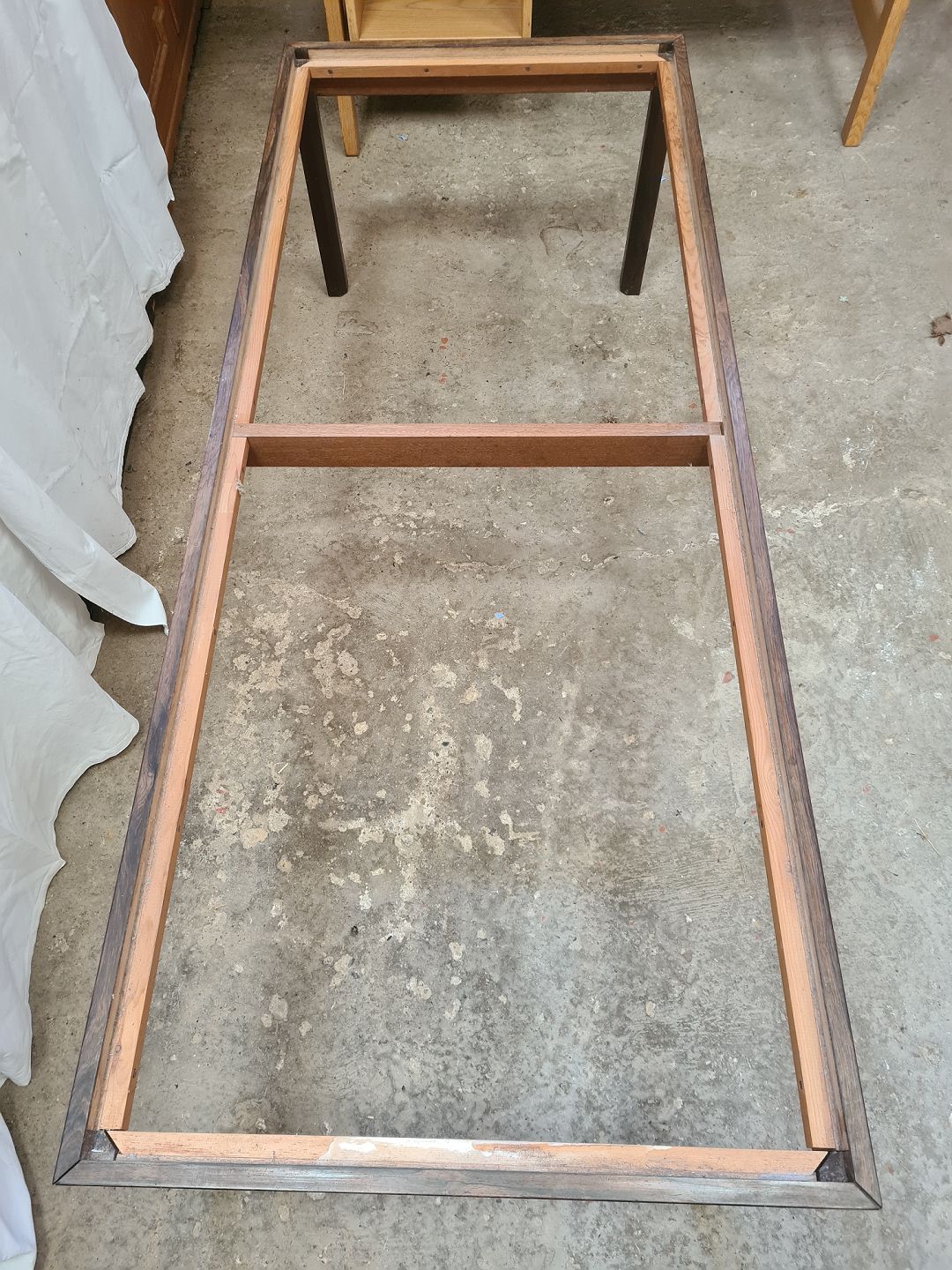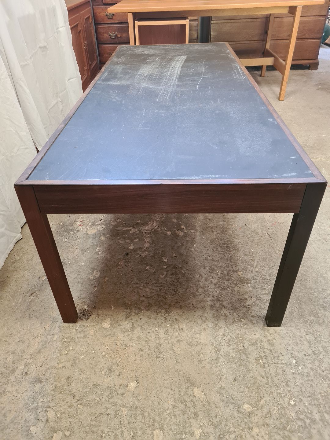 Sofabord i palisander med skifferplade, fra 1960erne. Pladen har brugsspor og bordstellet skal limes. Højde 53cm Bredde 70cm Længde 175cm Emne nummer: 90832