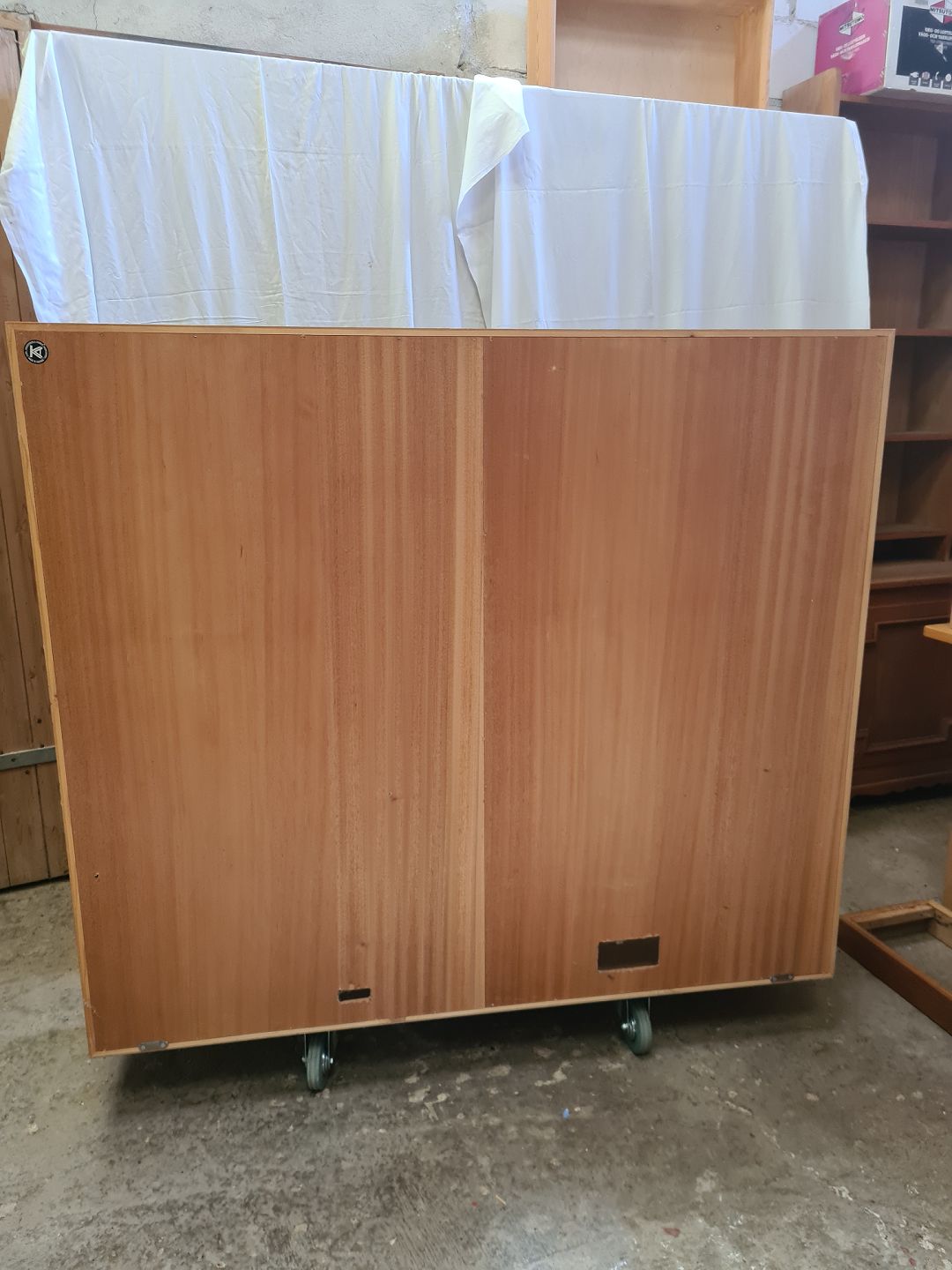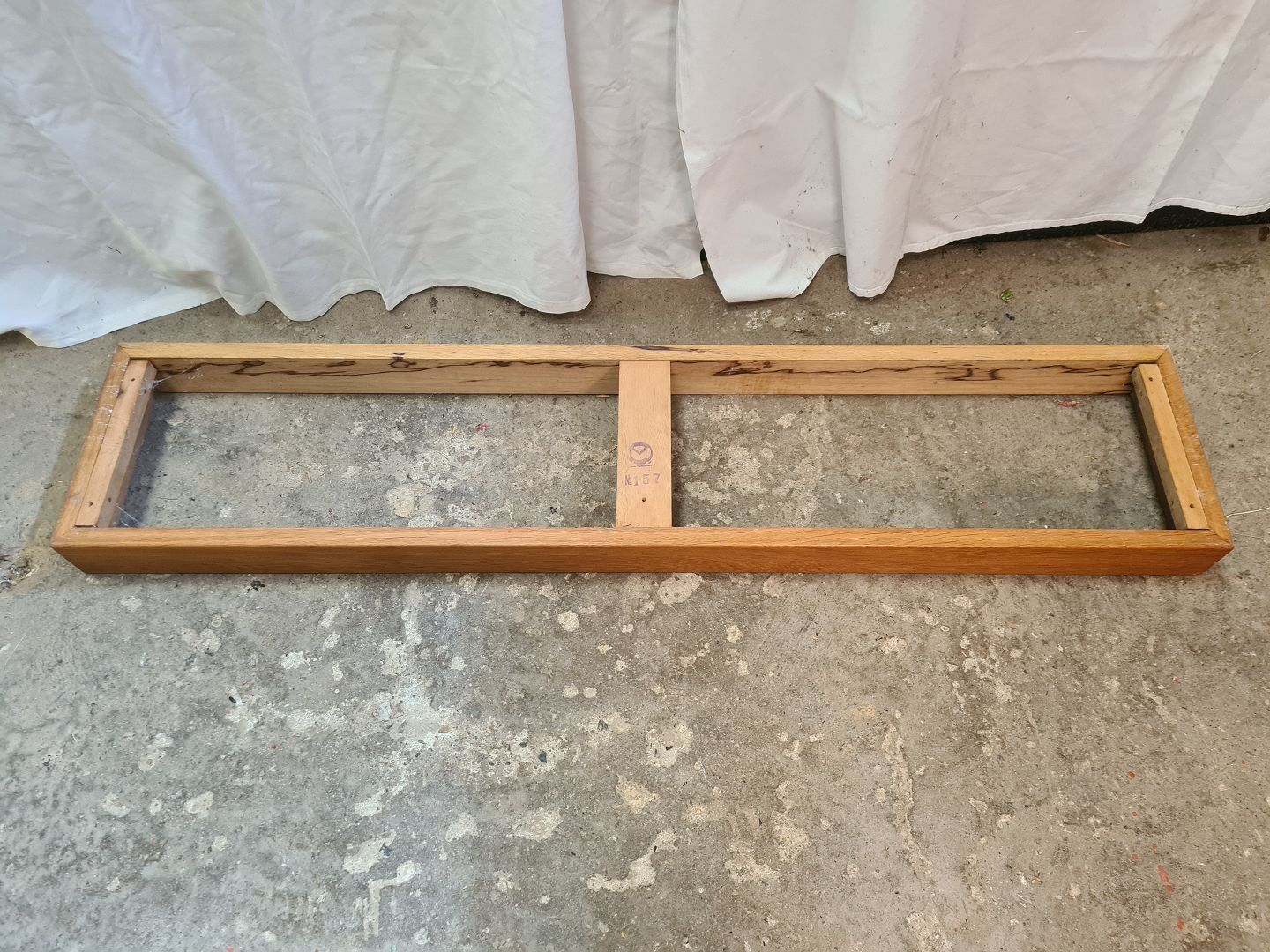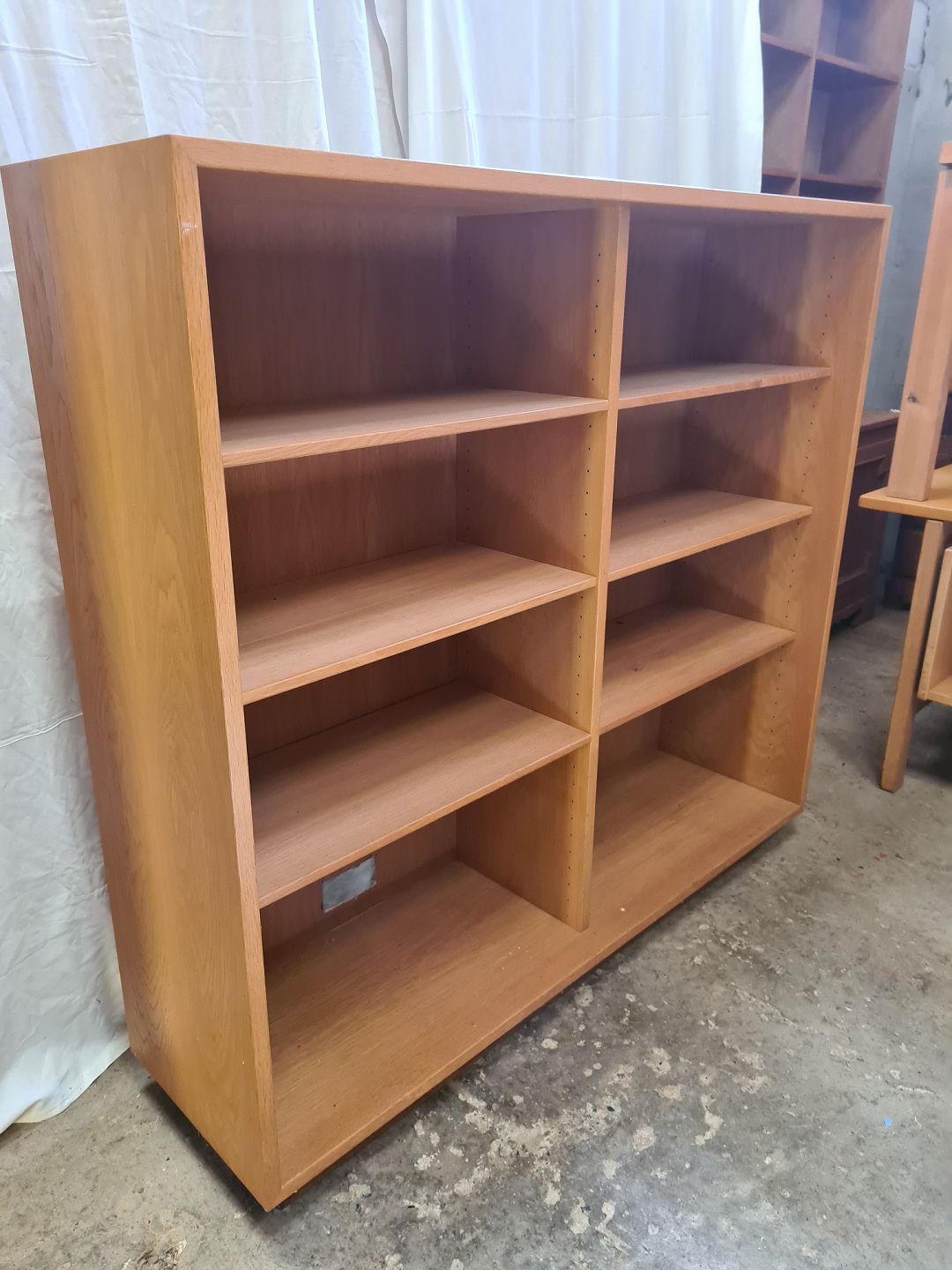 Reol i fineret egetræ, fra 1970erne. Den har brugsspor. Højde 118cm + Sokkel 7cm Bredde 135cm Dybde 36cm Emne nummer: 90839
