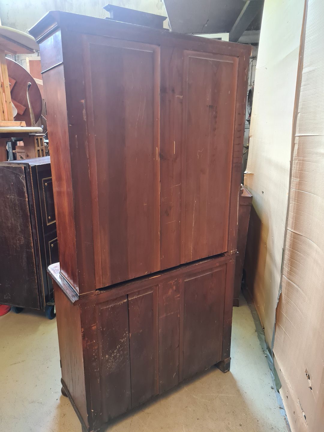 Skab i fineret bøgetræ, fra 1910erne. Det har brugsspor. Højde 197cm Bredde 97cm Dybde 43cm Emne nummer: 75765