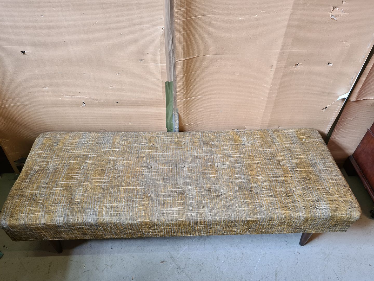 Briks med rygstykke fra 1950erne. Den har brugsspor. Briks mål : Hæjde 41cm Bredde 192cm Dybde 70cm Rygstykke mål : Højde 32cm Bredde 192cm Dybde 21cm Emne nummer: 75763