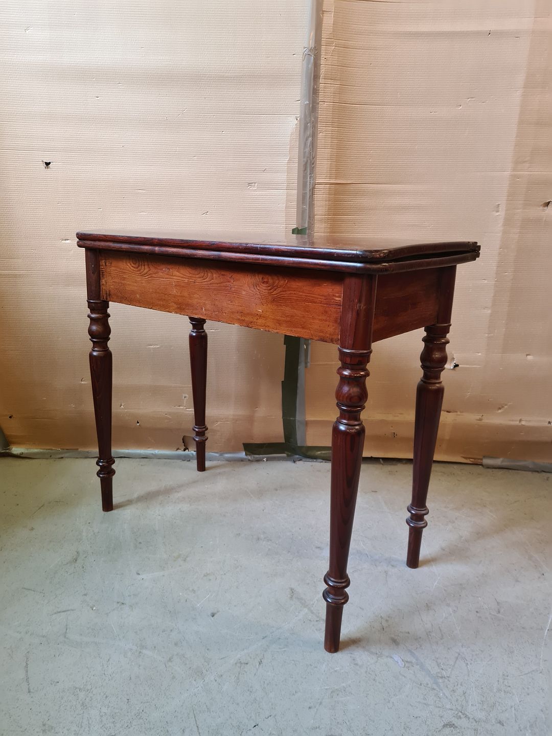 Spillebord i bejdset massivt fyrretræ, fra 1910erne. Det har brugsspor. Højde 78cm Bredde 87cm Dybde 42cm Mål udslået : 87cm X 84cm Emne nummer: 75786