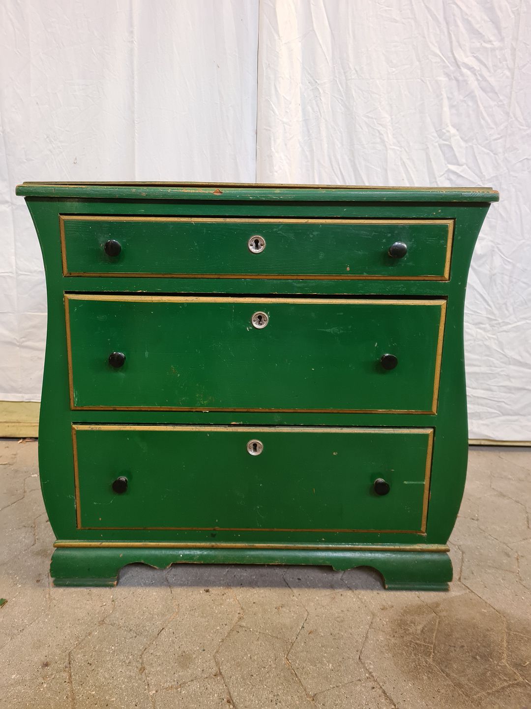 Malet kommode fra 1930erne. Den har brugsspor og mangler bagbeklædning. Højder 67cm Bredde 71cm Dybde 41cm Emne nummer: 90860