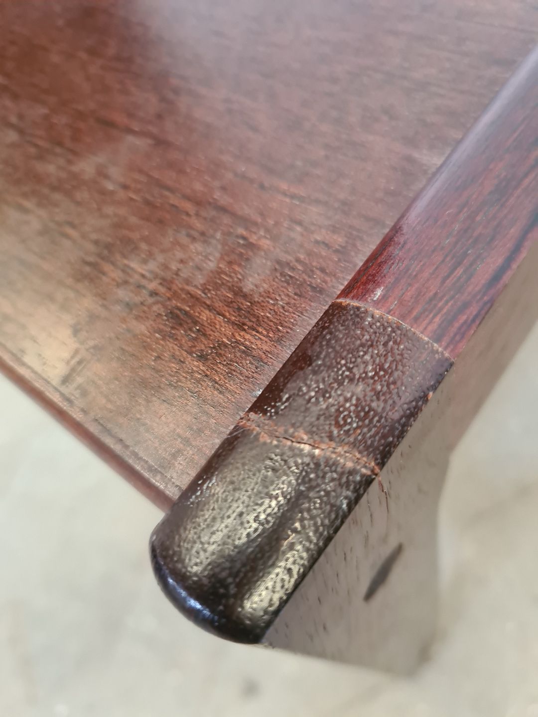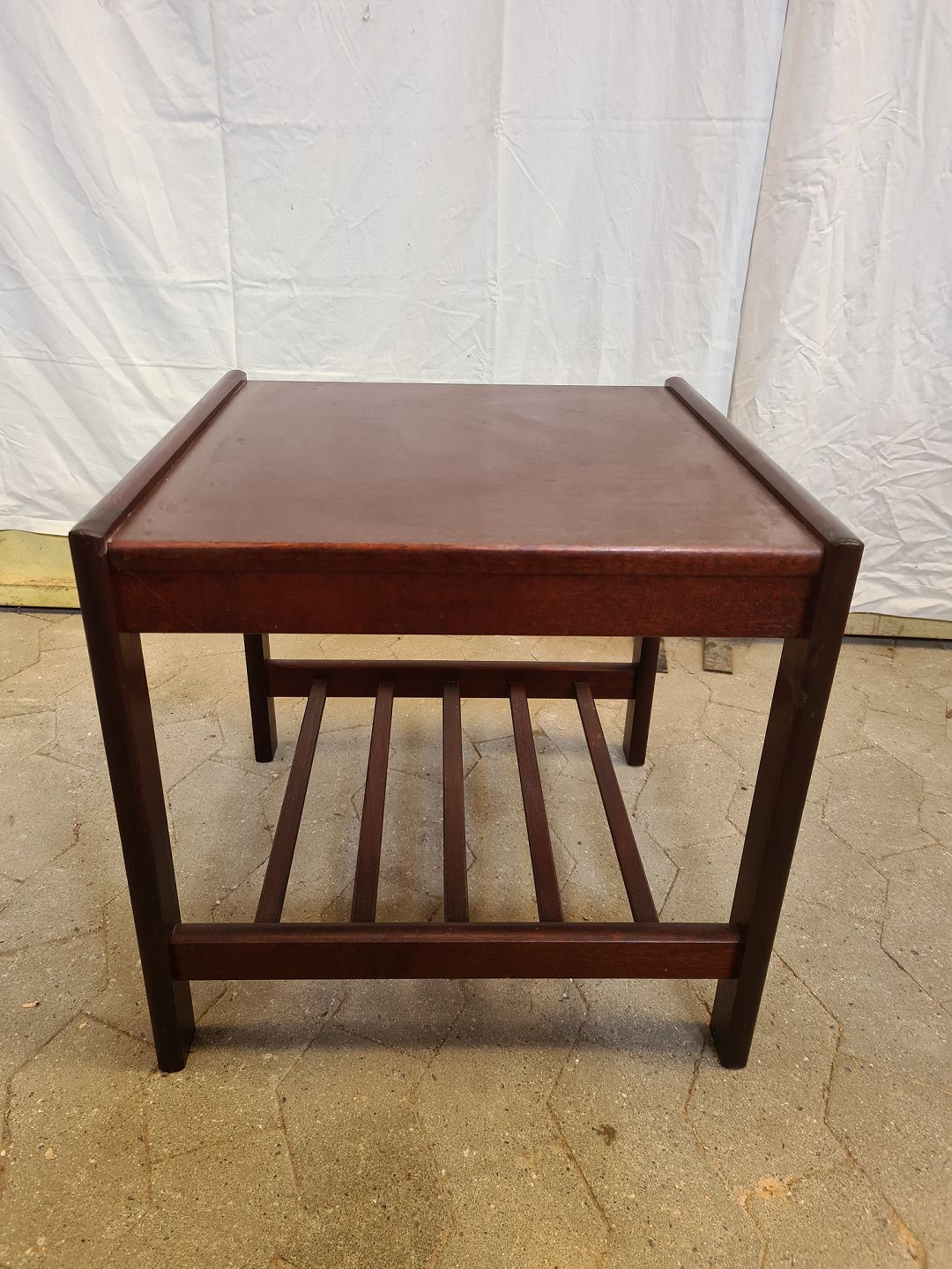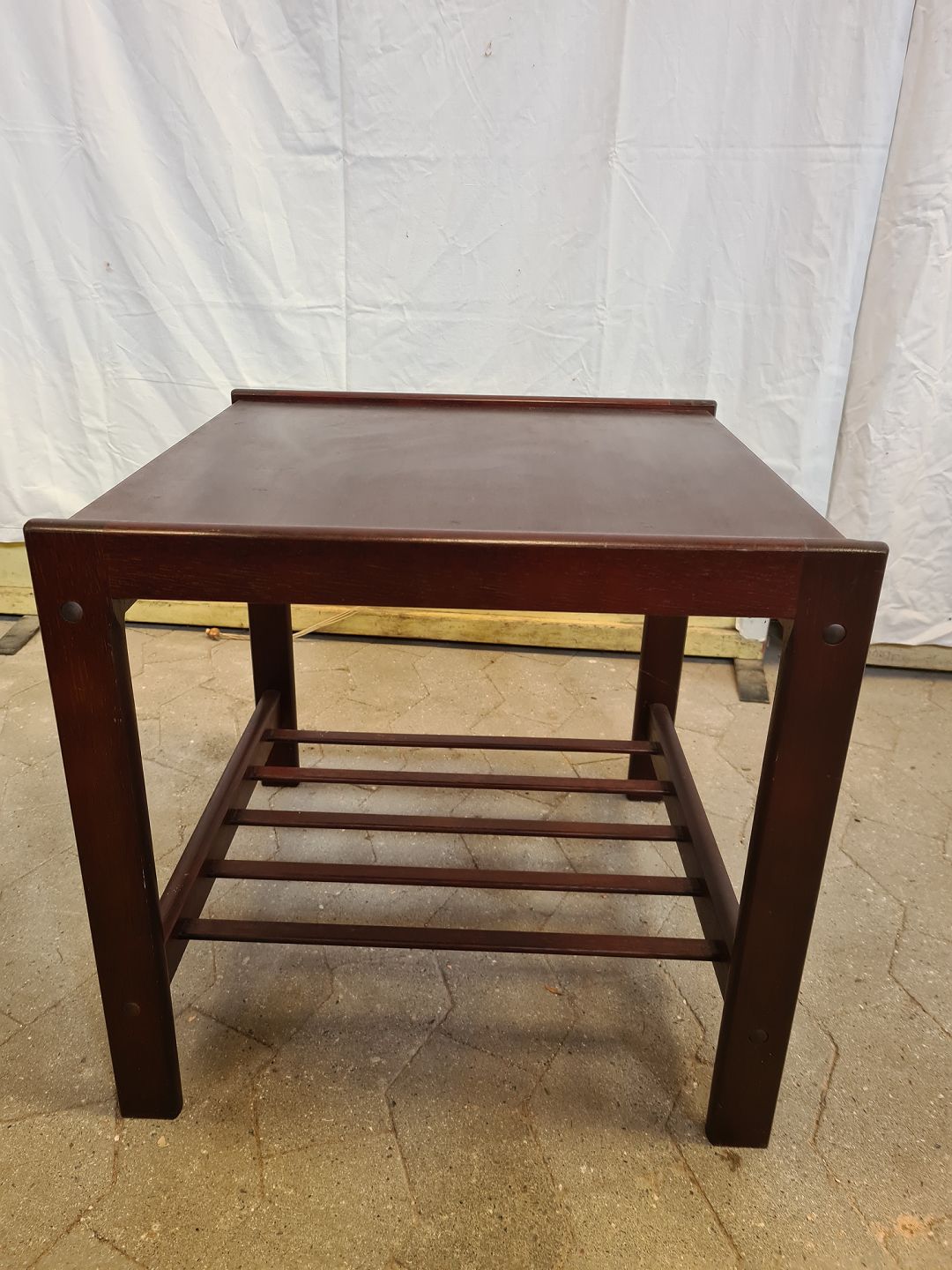 Lampebord i bejdset massivt og fineret bøgetræ, fra 1900erne. Det har brugsspor. Højde 45cm Bredde 47cm Længde 47cm Emne nummer: 90861