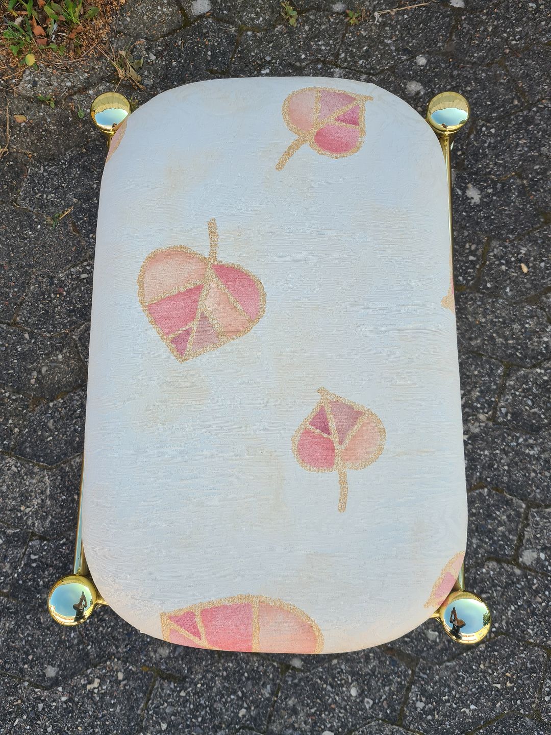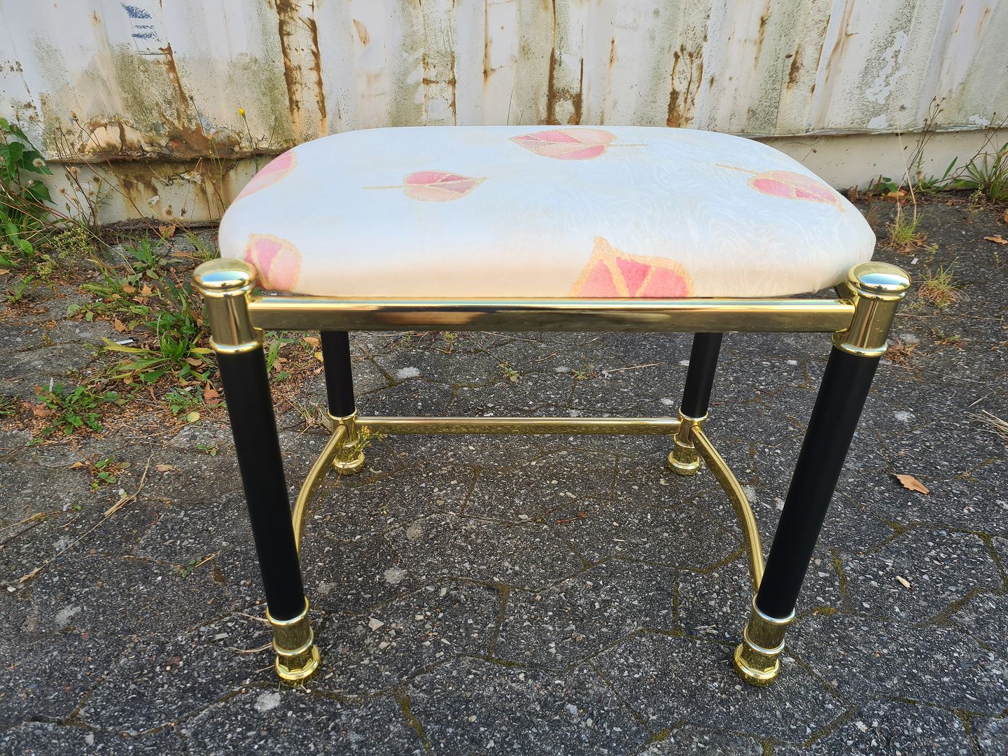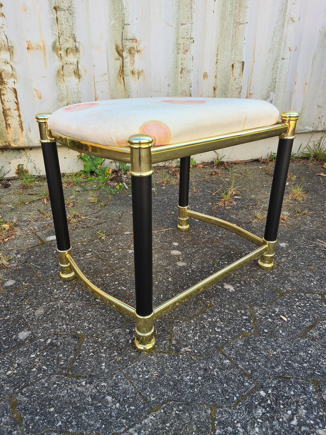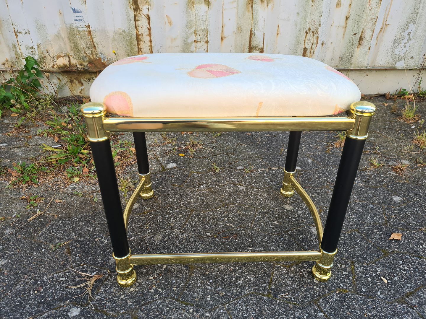 Skammel i metal med stofbetræk, fra 1990erne. Den har brugsspor. Højde 42cm Bredde 36cm Længde 48cm Emne nummer: 75858