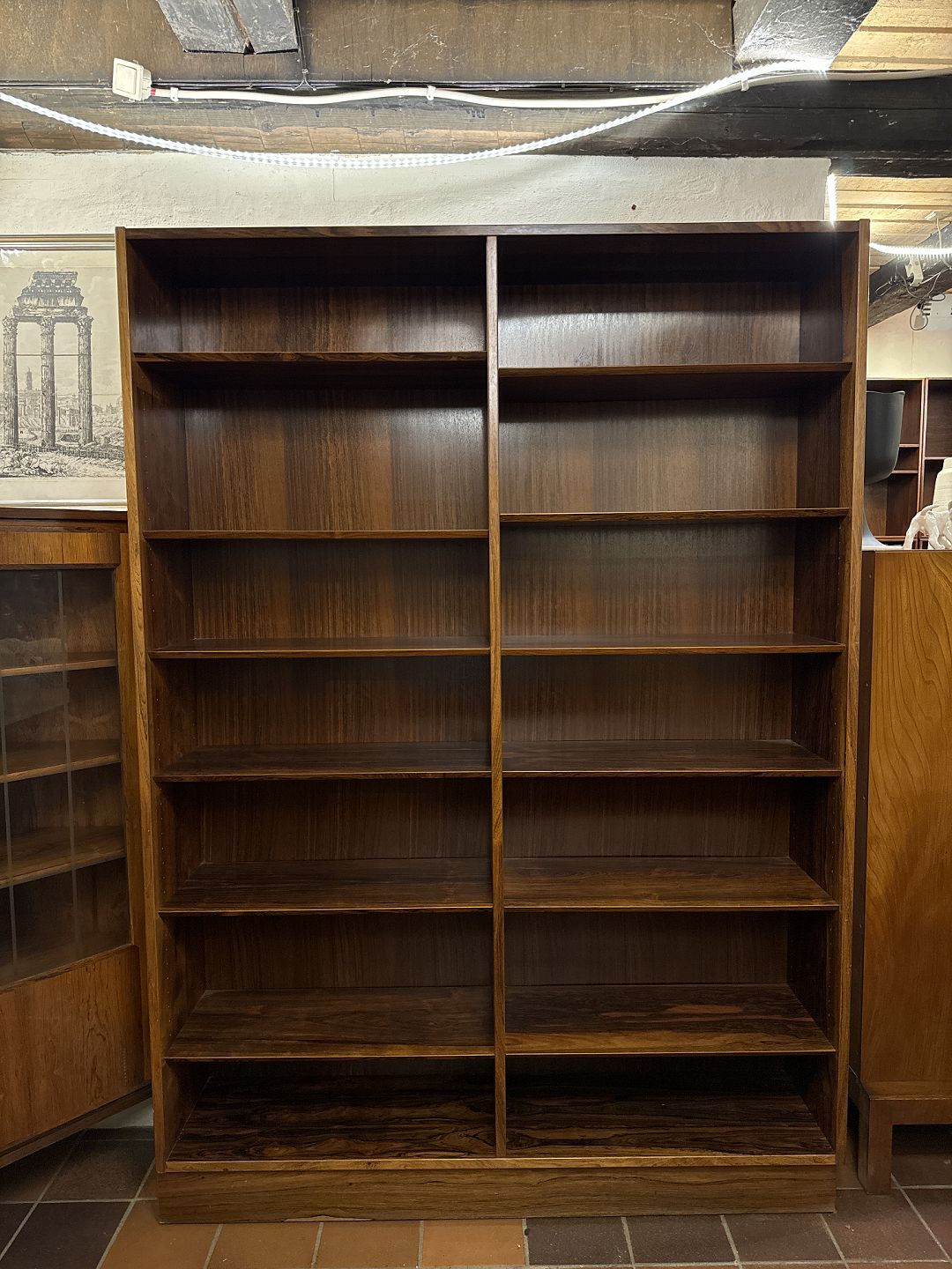 Poul Hundevad reol på sokkel med justerbar hylder. Udført i fineret palisander ca. 1960’erne. Fremstår i pæn brugt stand. Mål: H. 195 cm. B. 138 cm. D. 30,5 cm. Emne nummer: 80552