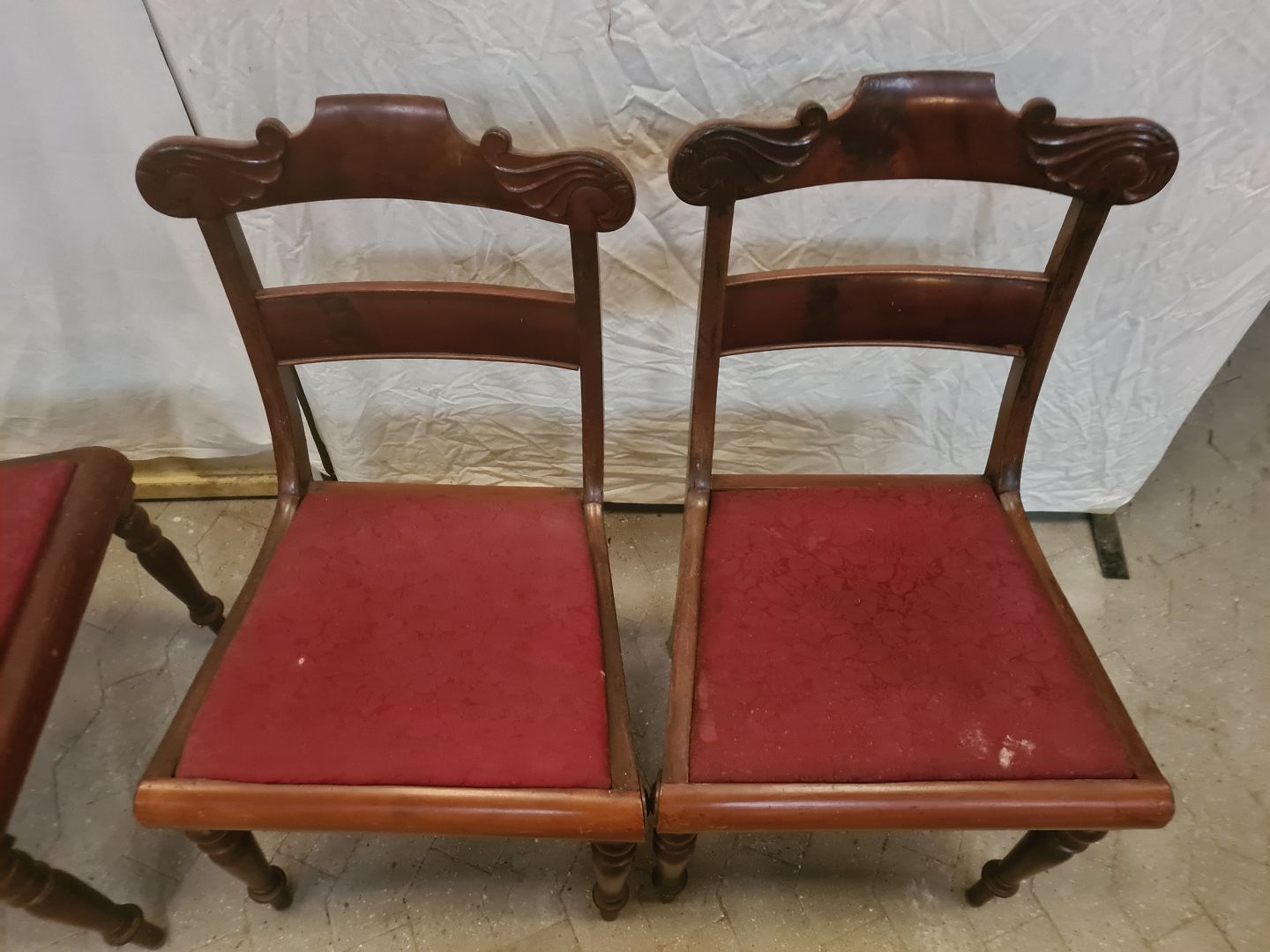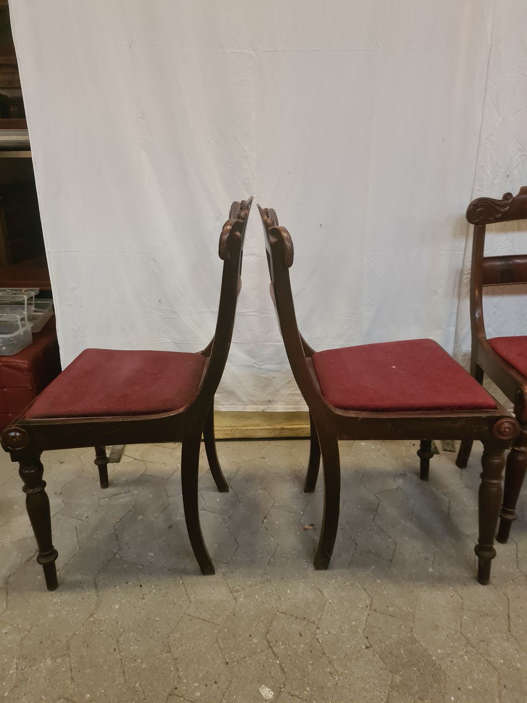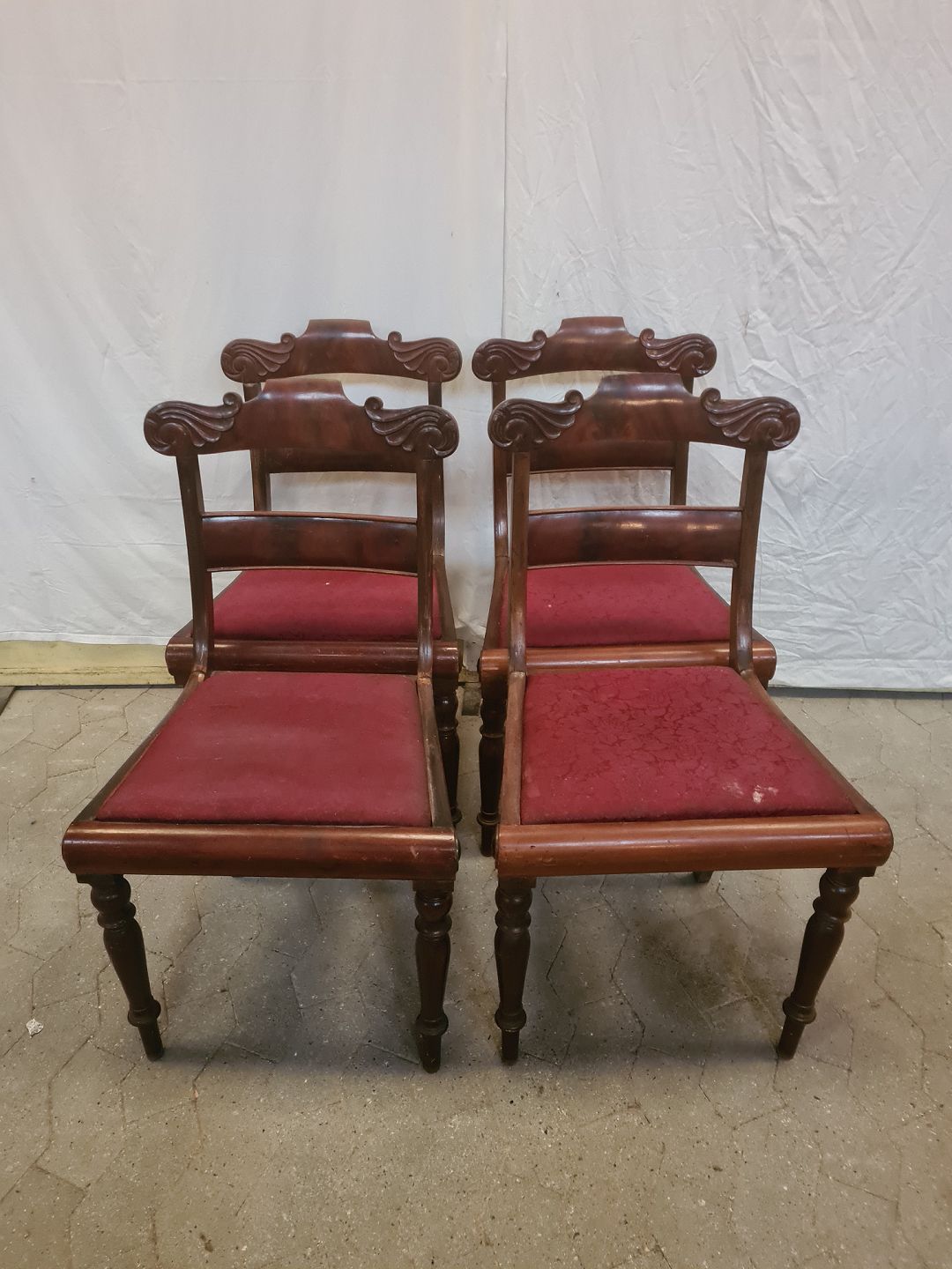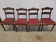 4 Stole i mahogni og bøgetræ, fra 1900erne. De har brugsspor og trænger til service. Ryghøjde 90cm Sædehøjde 47cm Emne nummer: 90939