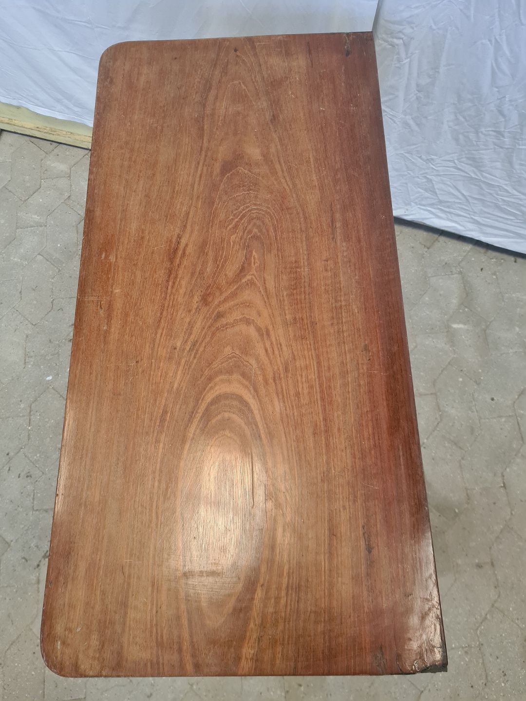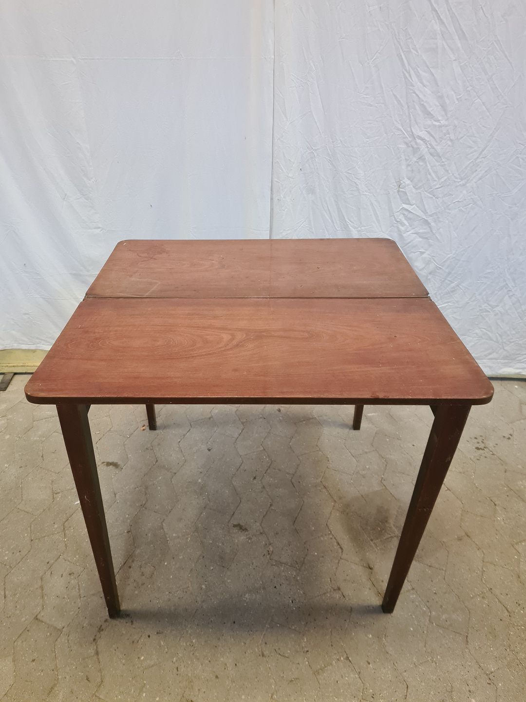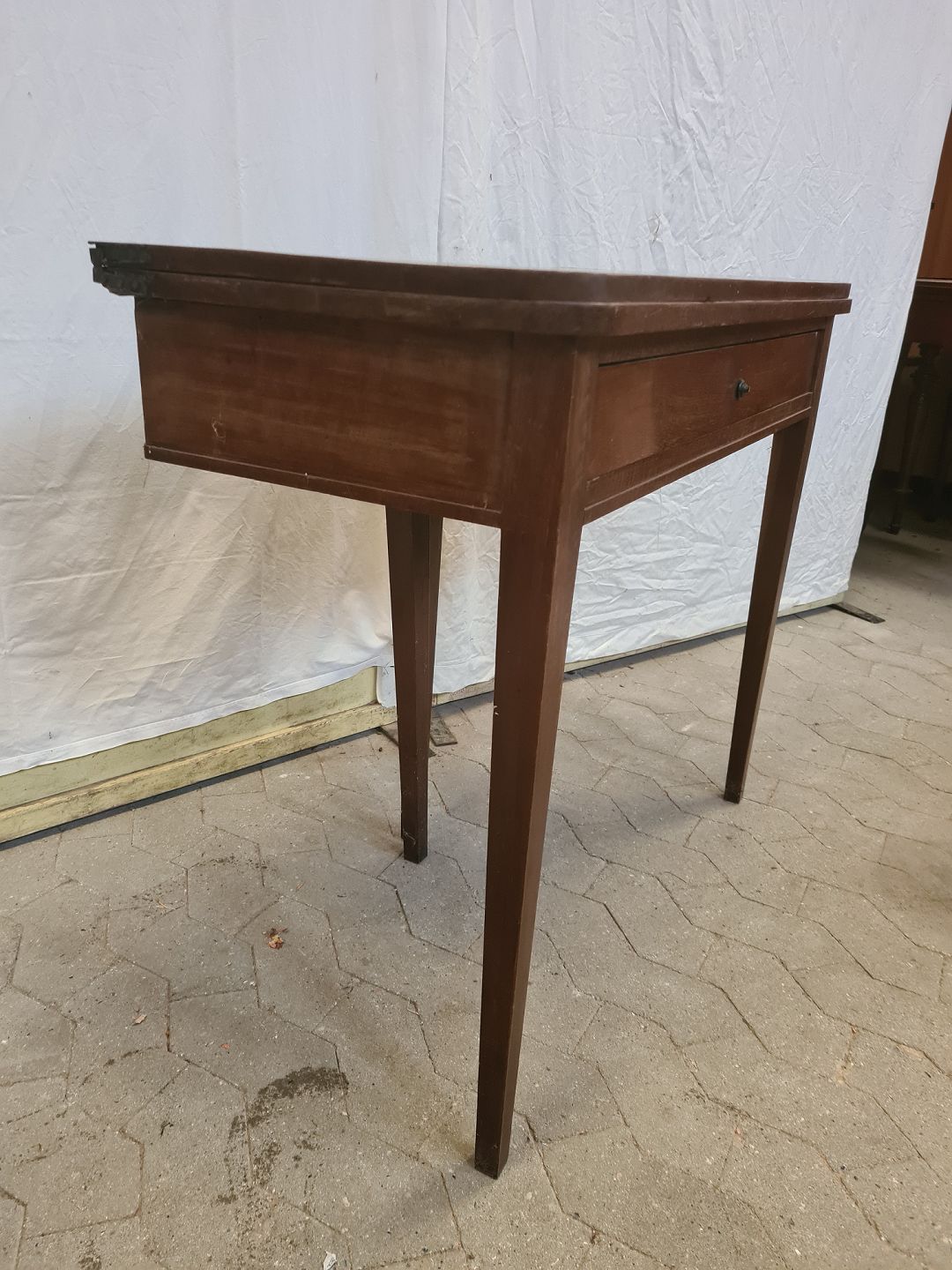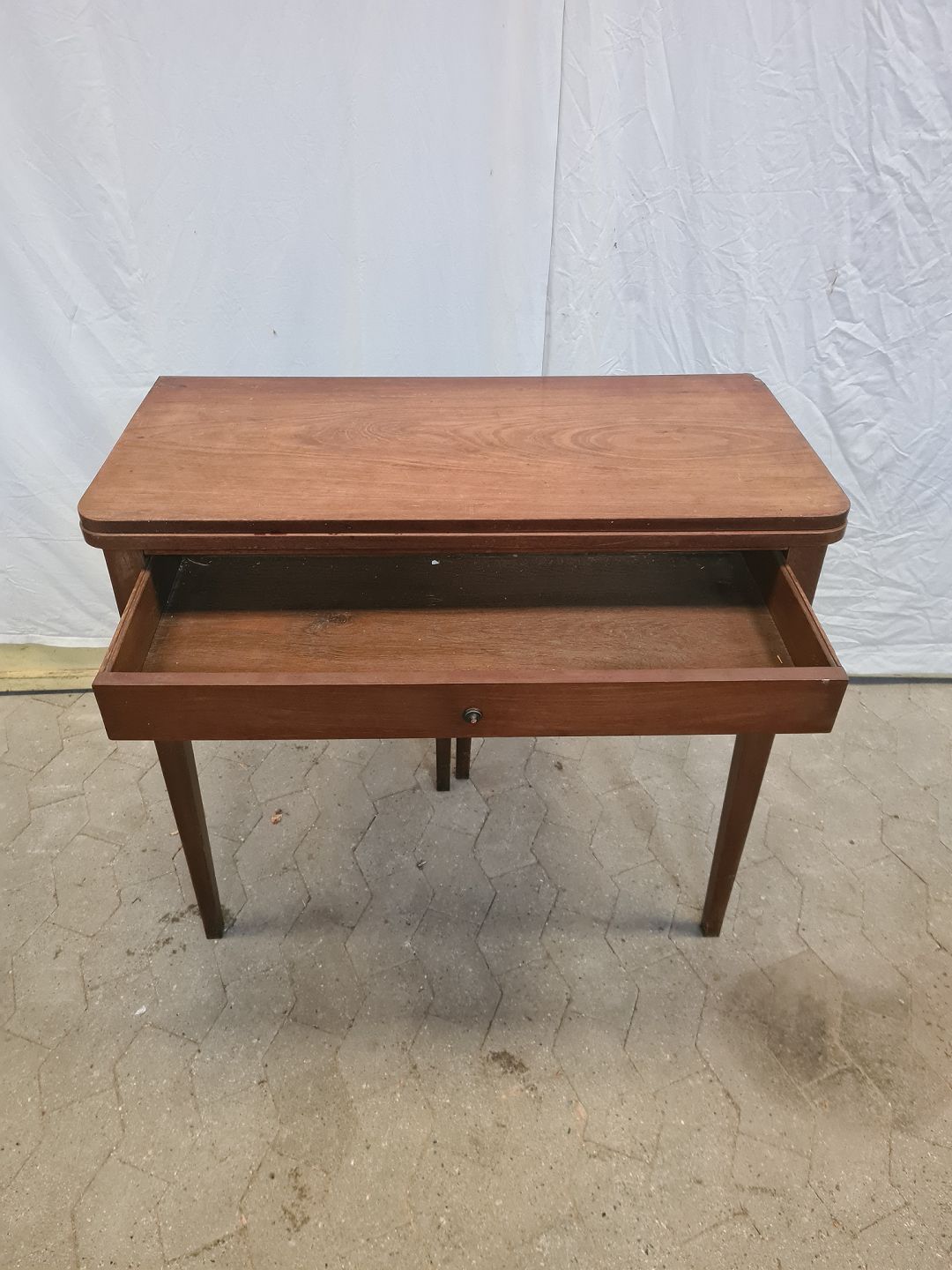 Spillebord i fineret mahogni, fra 1900erne. Det har brugsspor og bagbenene er lidt skæve. Højde 78cm Bredde 44cm Længde 89cm Bredde udslået 88cm Emne nummer: 90945